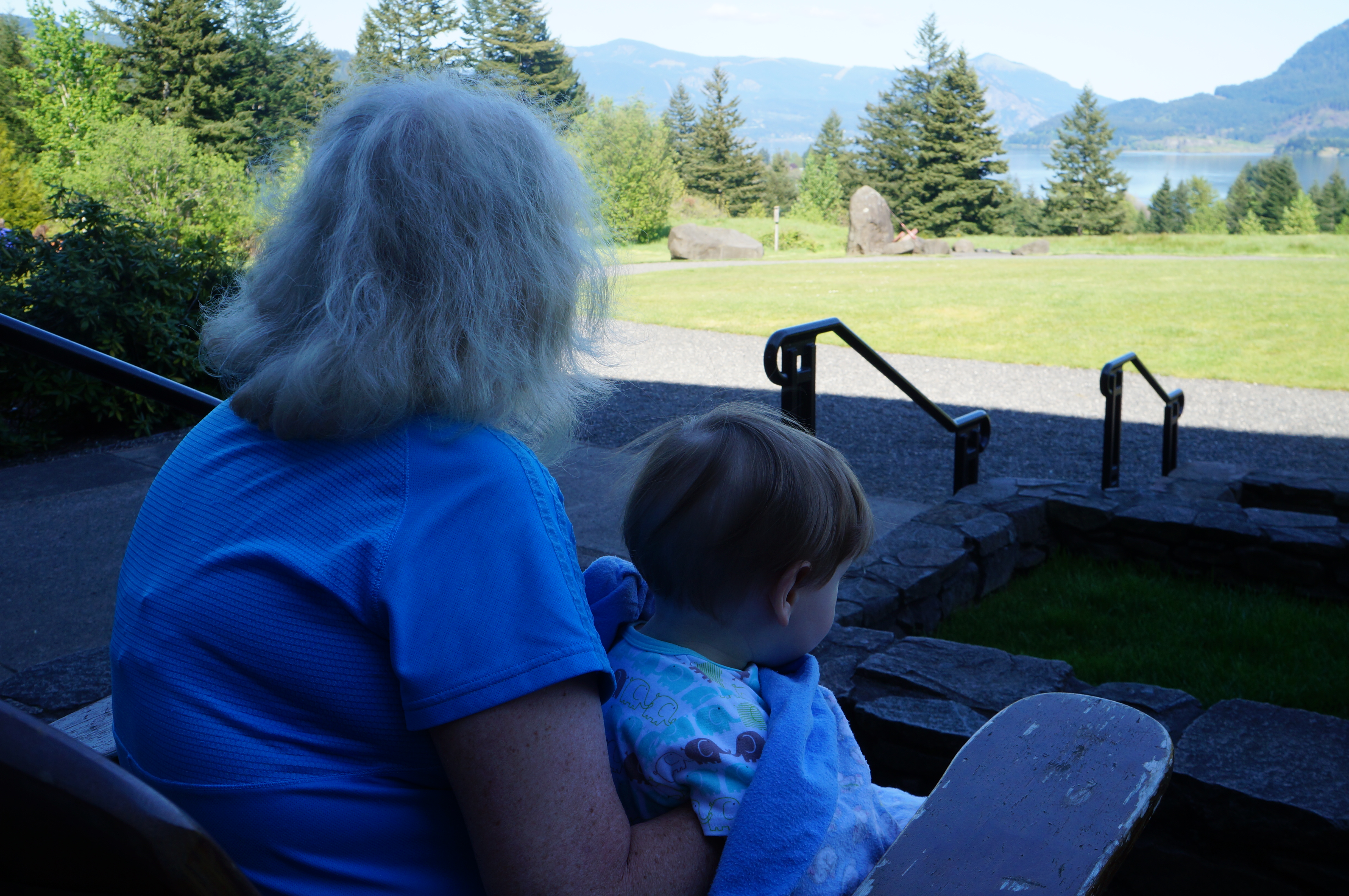 Yesterday, Ari and I went to visit my parents at a conference my dad was attending at Skamania Lodge, an hour from us in the gorge. We drove there during Ari’s morning nap time and he obliged by sleeping all the way! Then we stayed overnight and drove back during today’s morning nap. It worked perfectly!