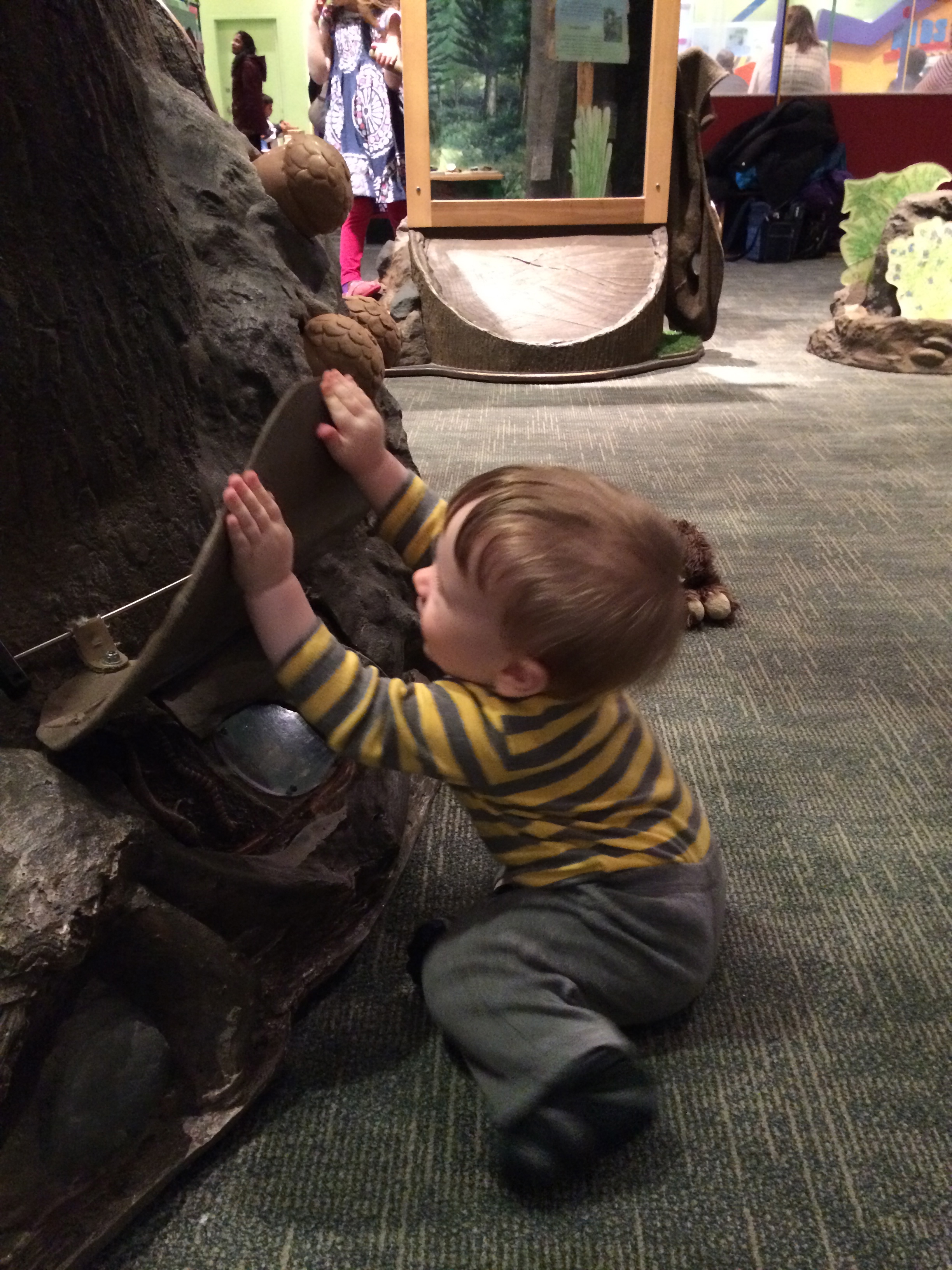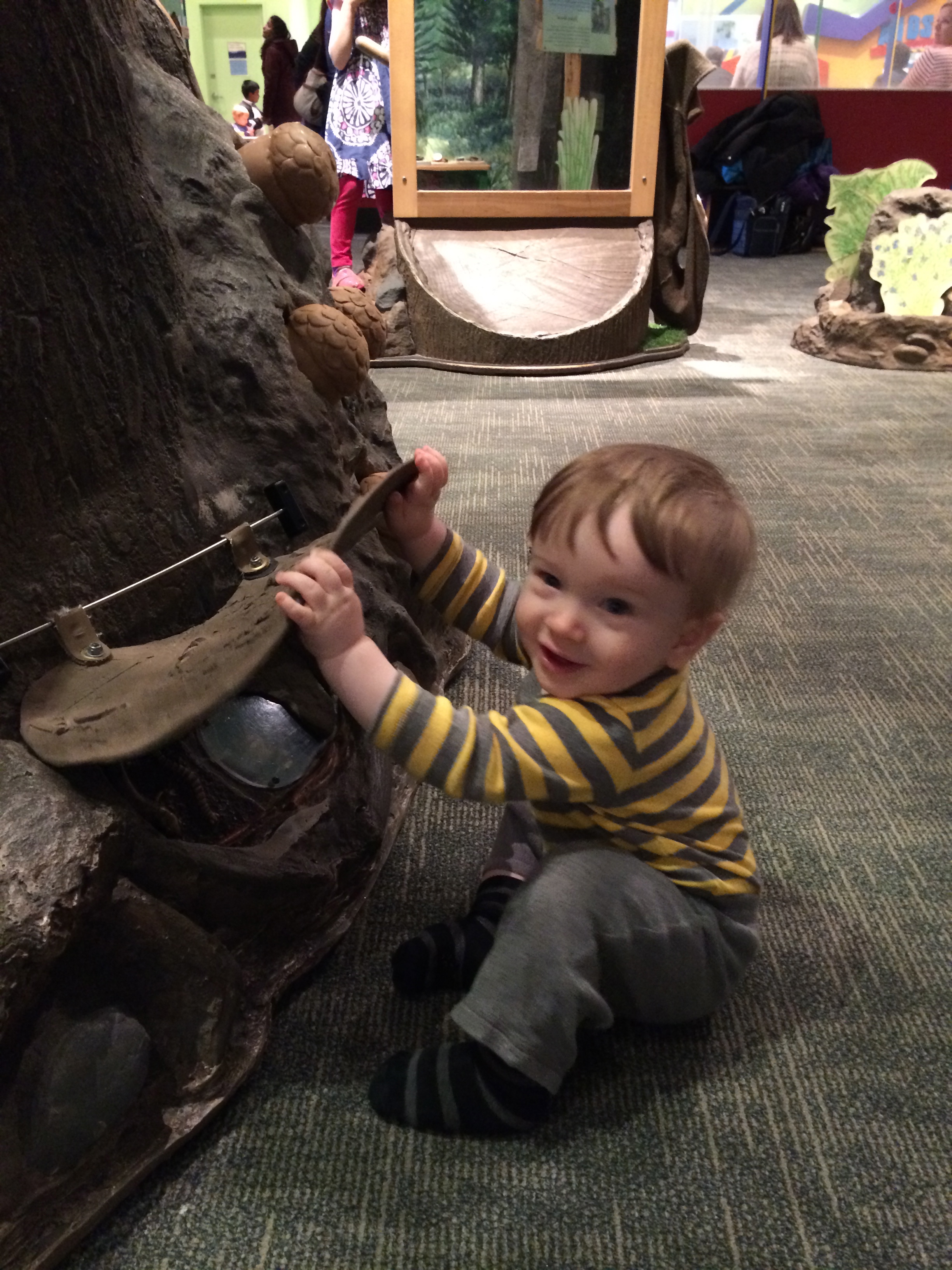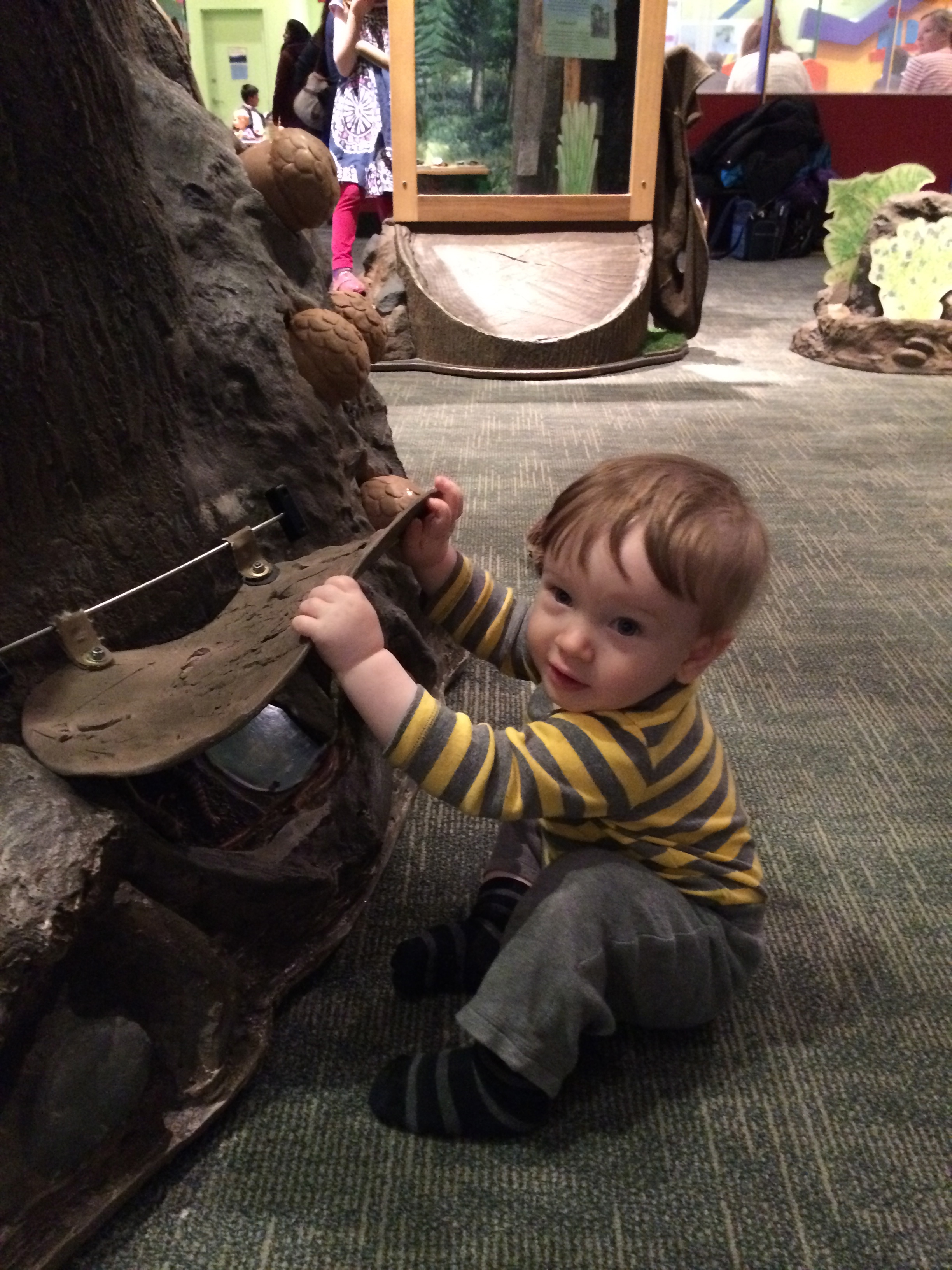 Ari is really a little young for OMSI, I discovered (also his nanny had told me that). All of the other babies there seemed to have an older sibling and they were just along for the ride, strapped on to their mothers. I wanted to run around like a little kid and try every single activity there right away, but that’s not baby speed. Ari’s more like, let me investigate this scrap of paper for the next 15 minutes. But he did really enjoy the water play area. He’s too short still to stand and play at the water activity tables, but I held him up to this whirlpool thing were you could drop balls into the water and watch them get sucked down the whirlpool, and he just loved holding a ball in the rushing water and occasionally letting it go.