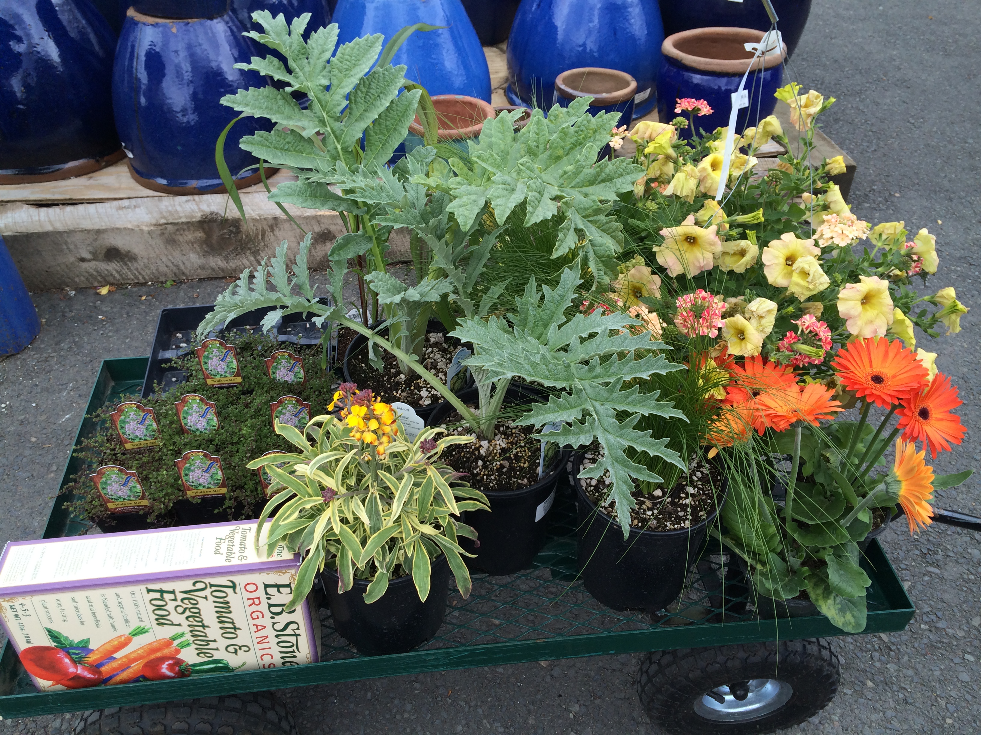 …and we got some flowers, decorative grasses, and artichoke plants: