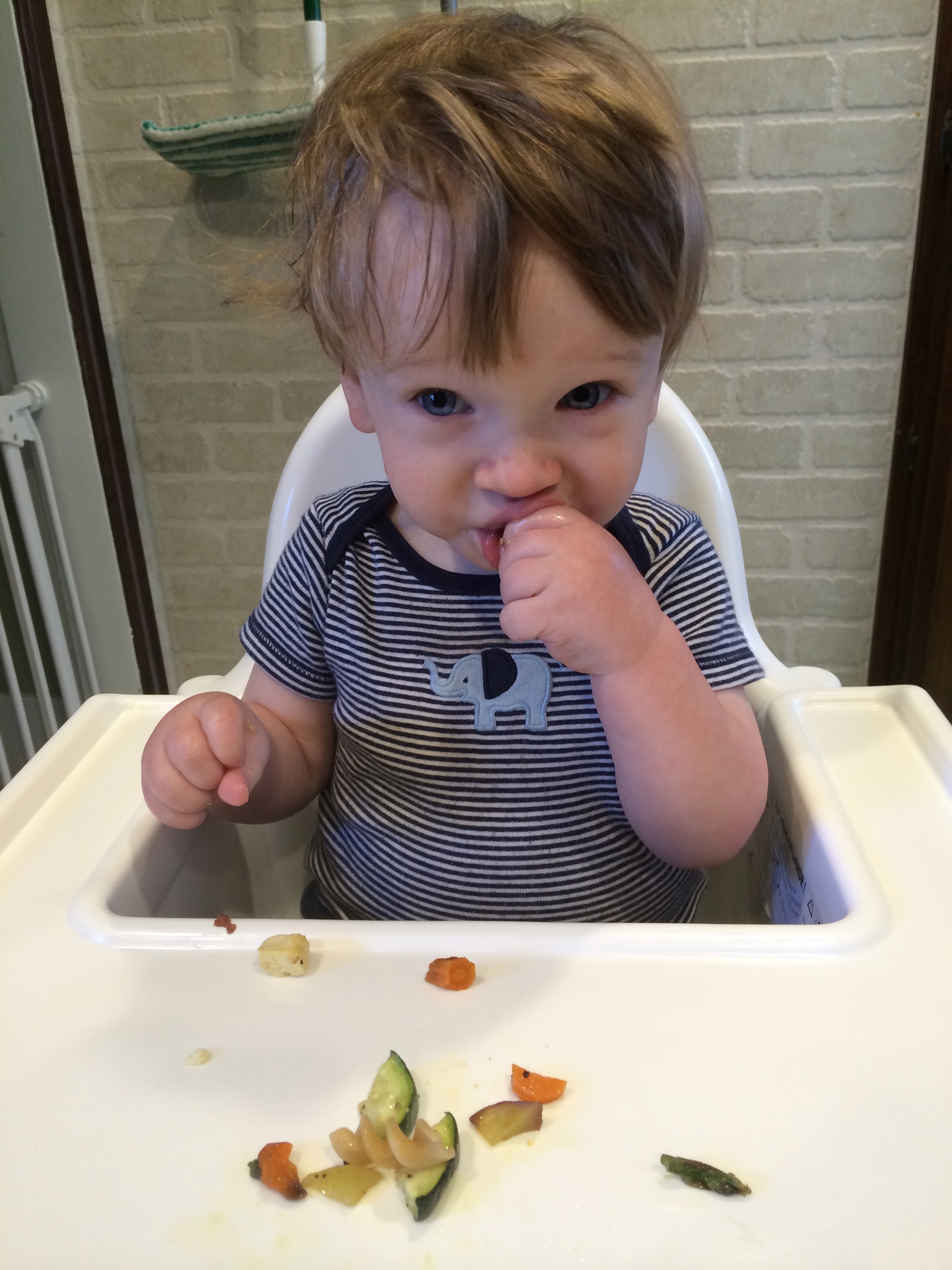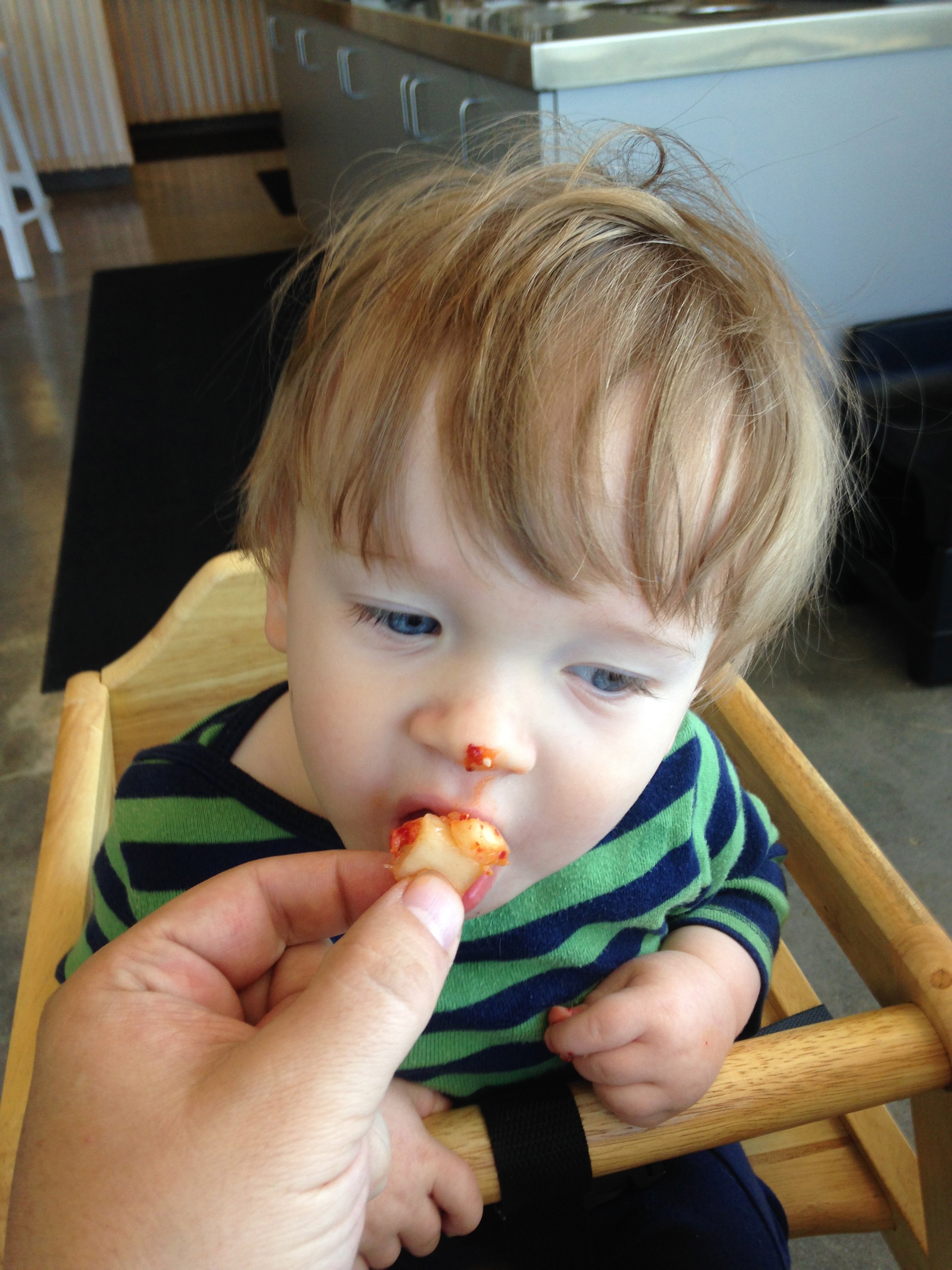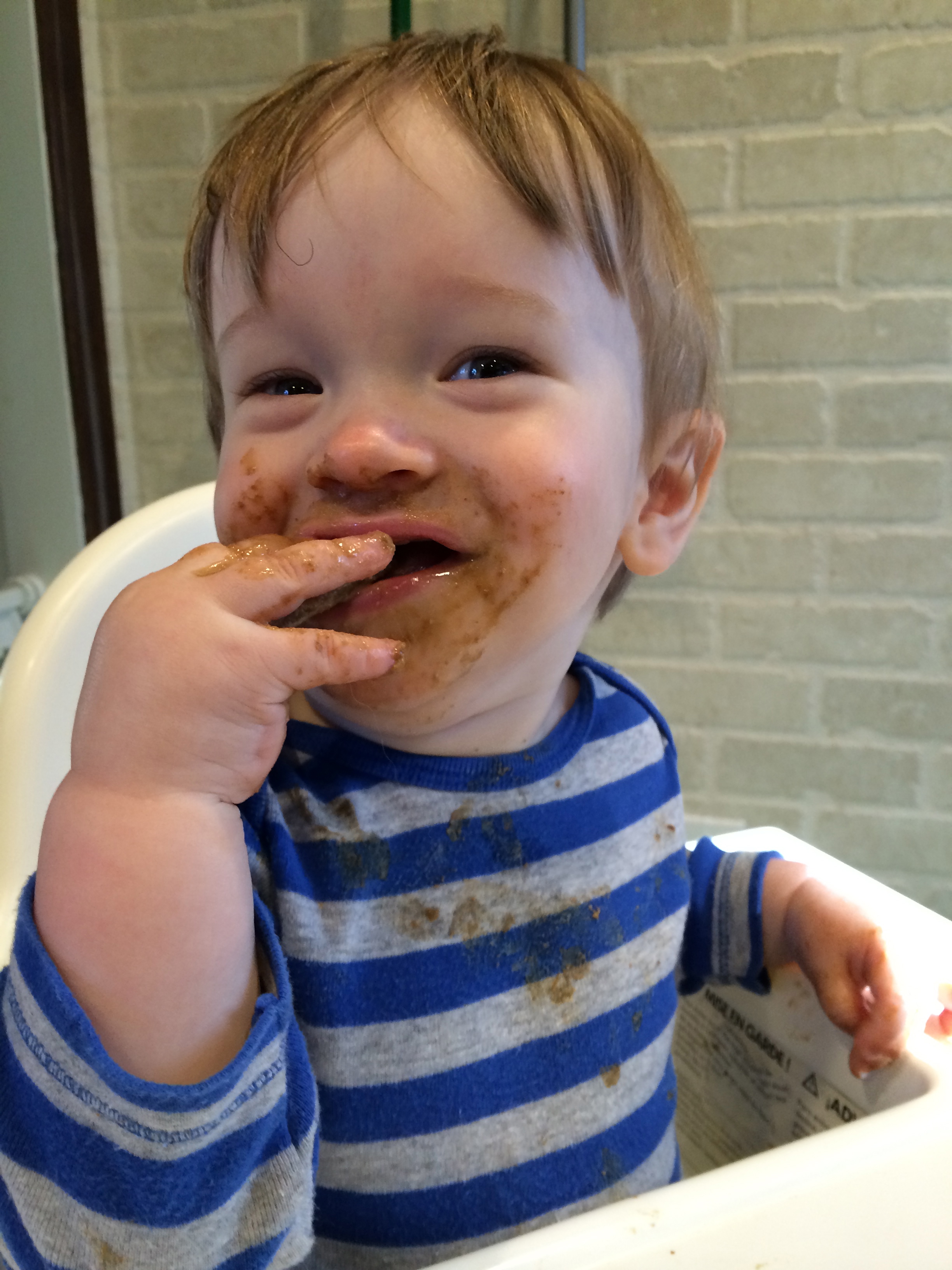 Here are some pictures of Ari eating a surprisingly messy teething biscuit: