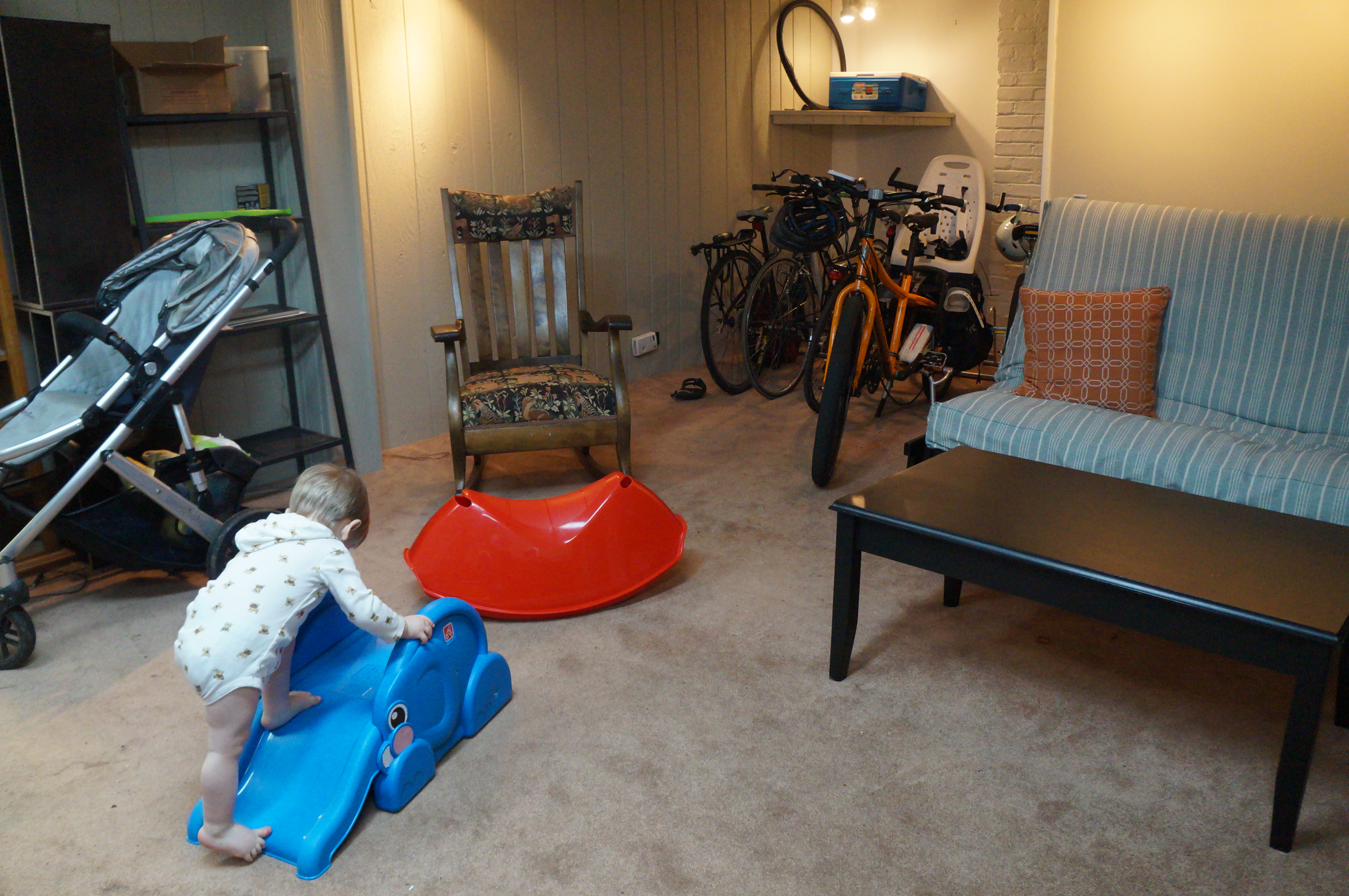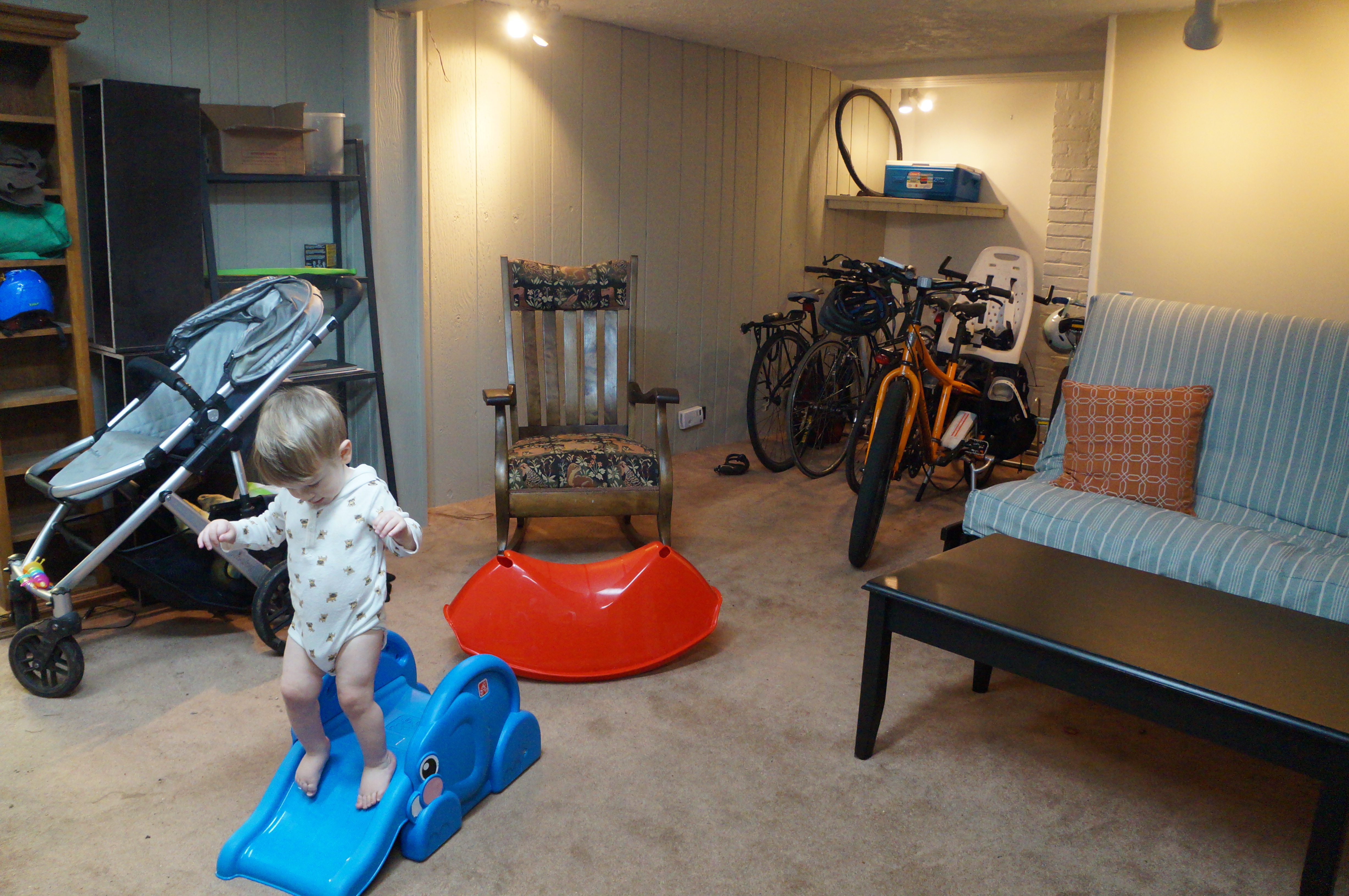 In January, we did some work organizing and cleaning up and got a futon down there, and it’s looking pretty good!