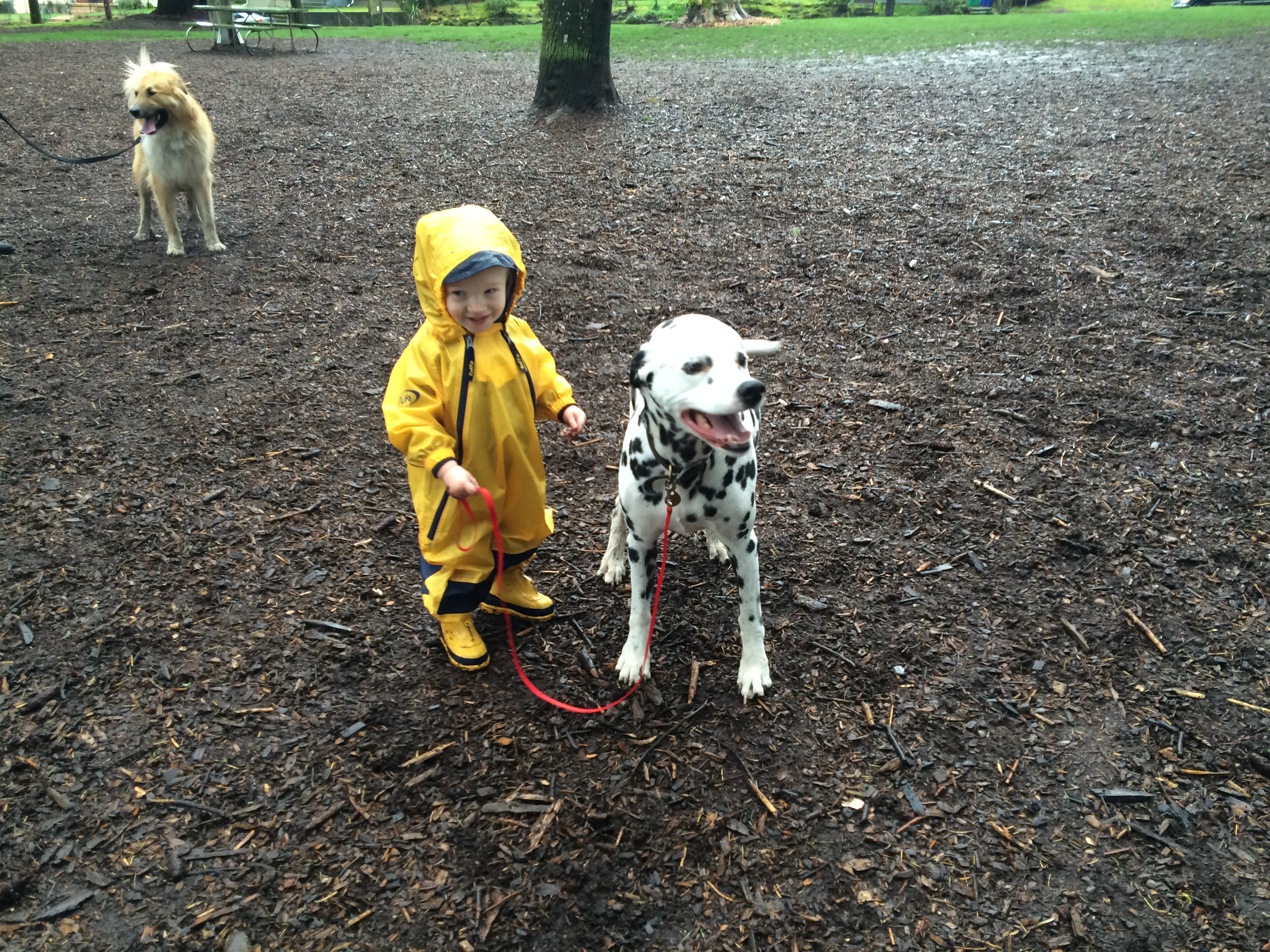 Walking Andrew at Thousand Acres dog park, with a friend: