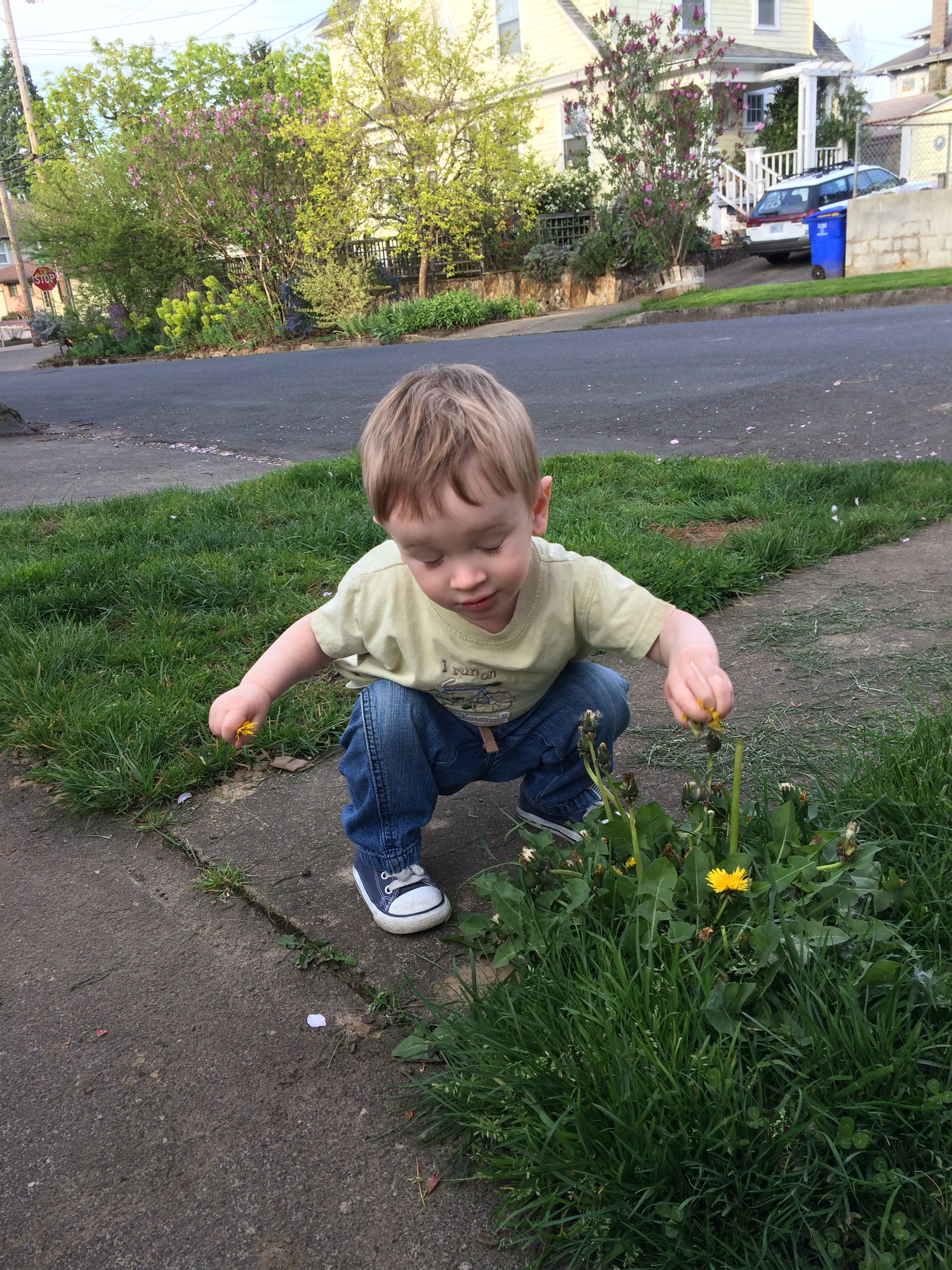 Possibly his favorite thing right now is picking “yellow flowers!!”