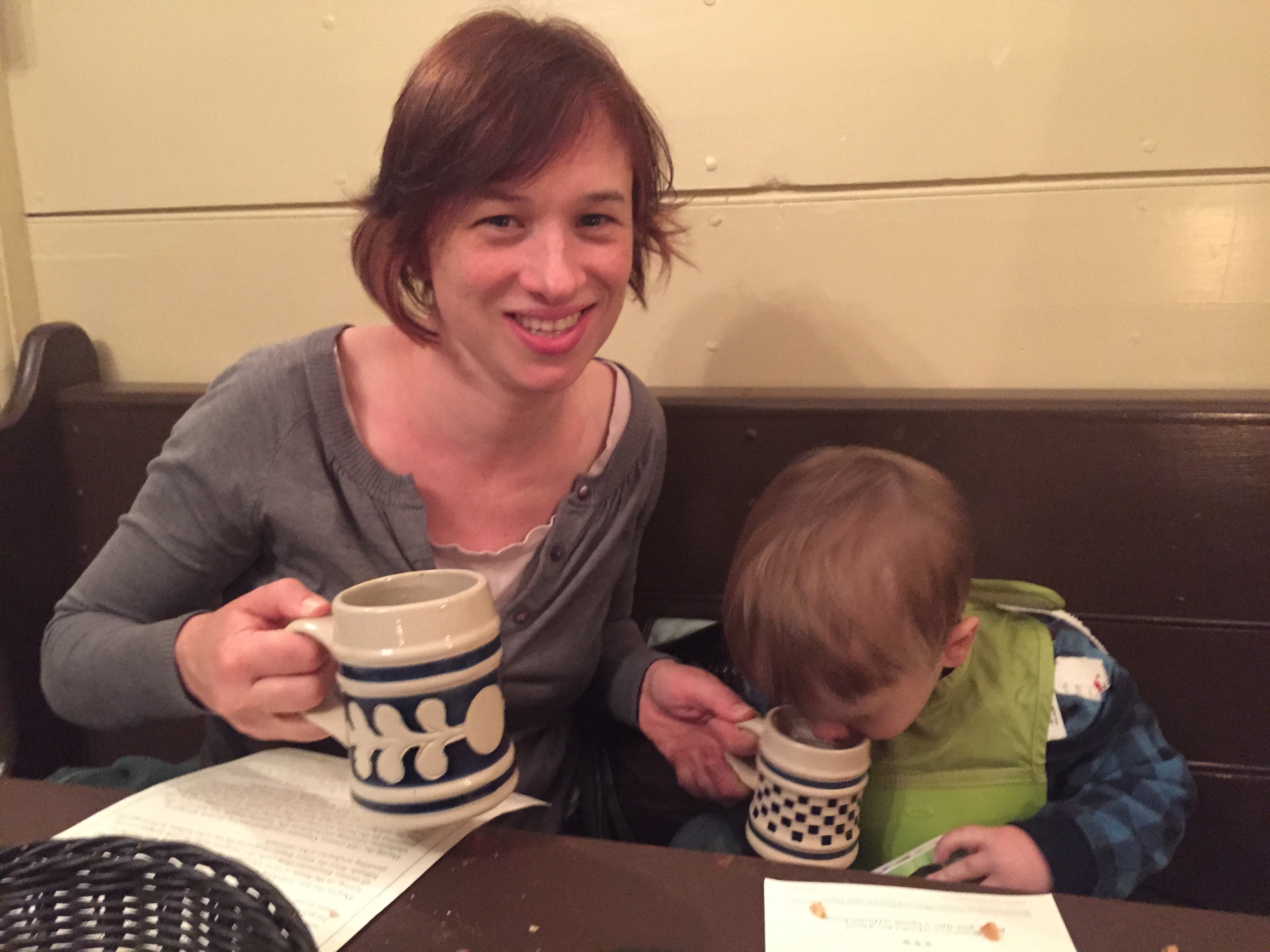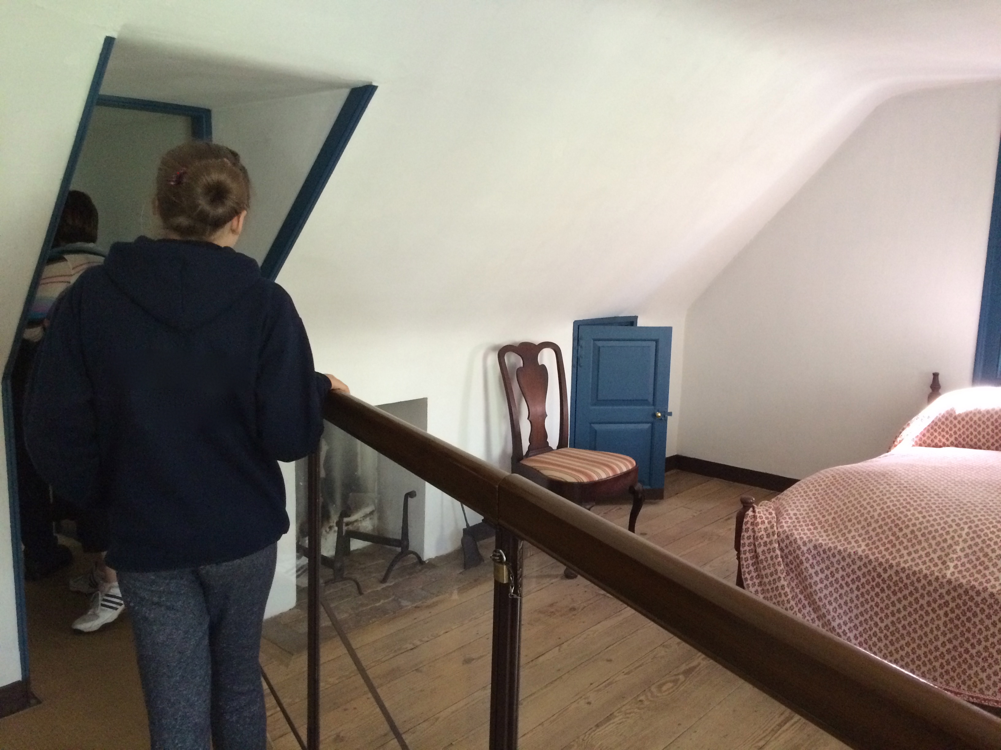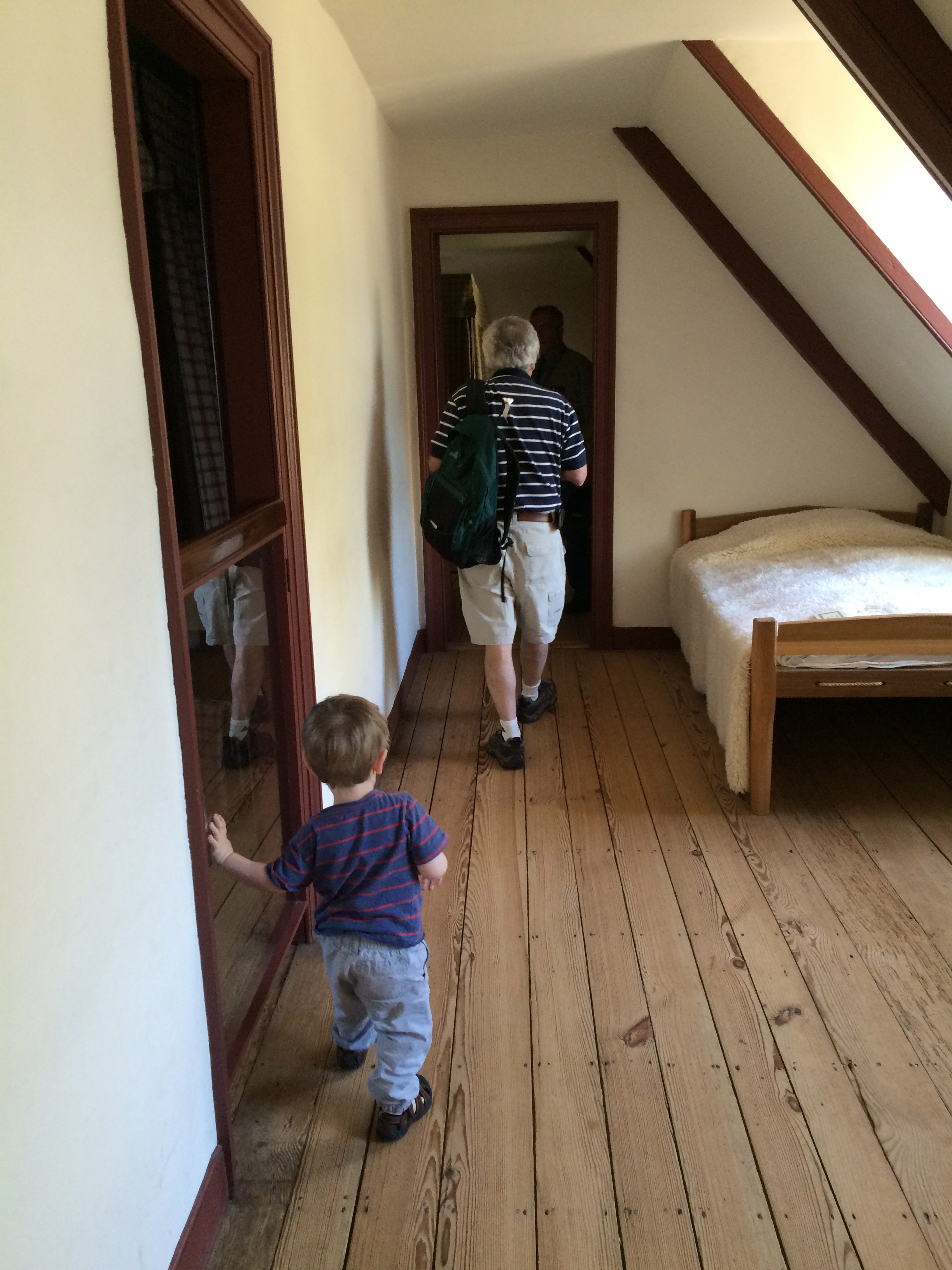 After that tour, we headed for a late lunch at the same tavern where we’d had dinner the night before, but this time we sat outside. Ari woke up just in time to eat with us! Then we toured another tavern, set up to show how the people who ran it lived there and what the conditions were like for their guests. (Short version: very little privacy! On the higher end, you shared a room with other guests, and on the lower end, you might share a bed with a few other people! A few other men, really, because women didn’t stay in taverns.)