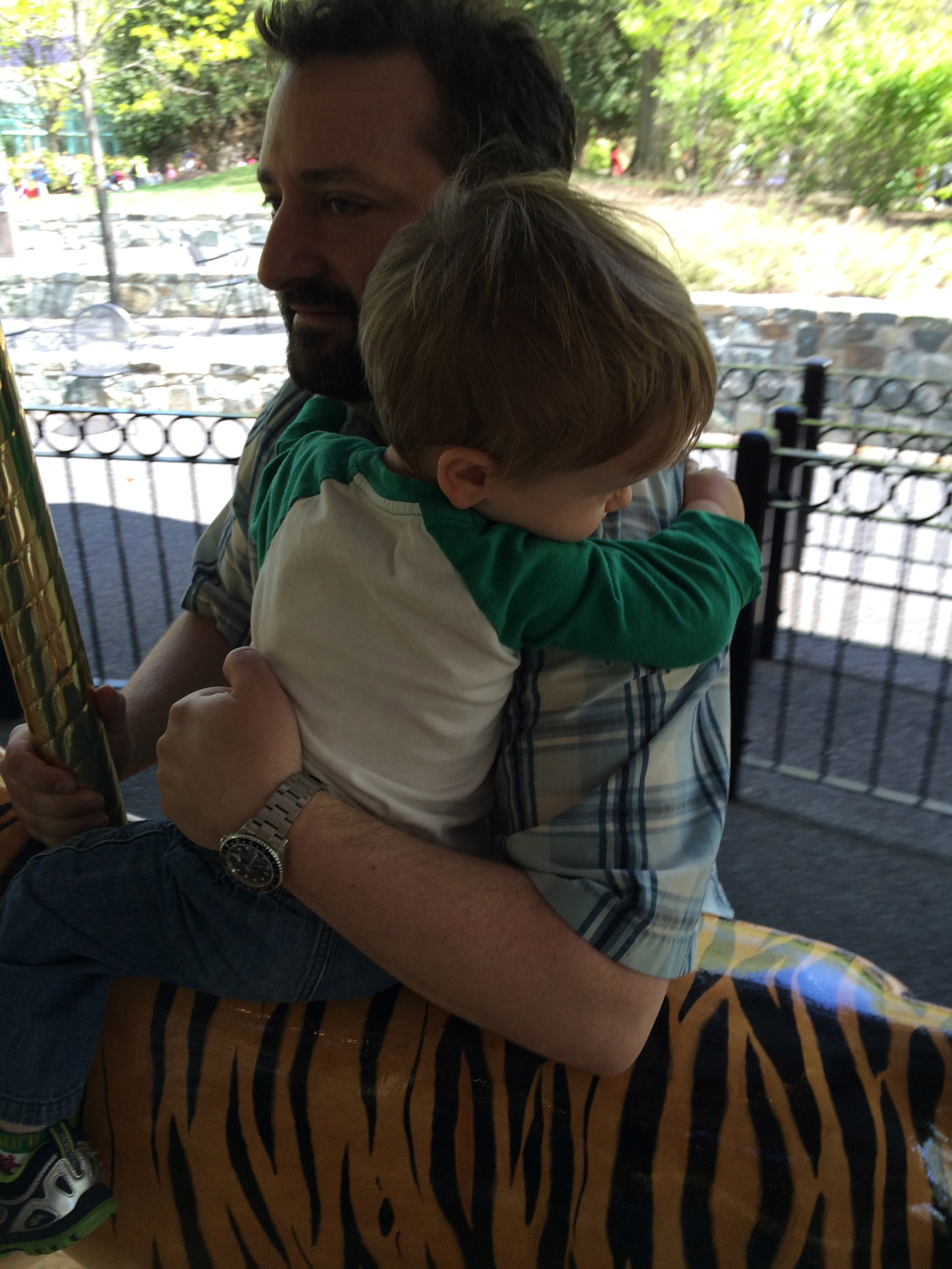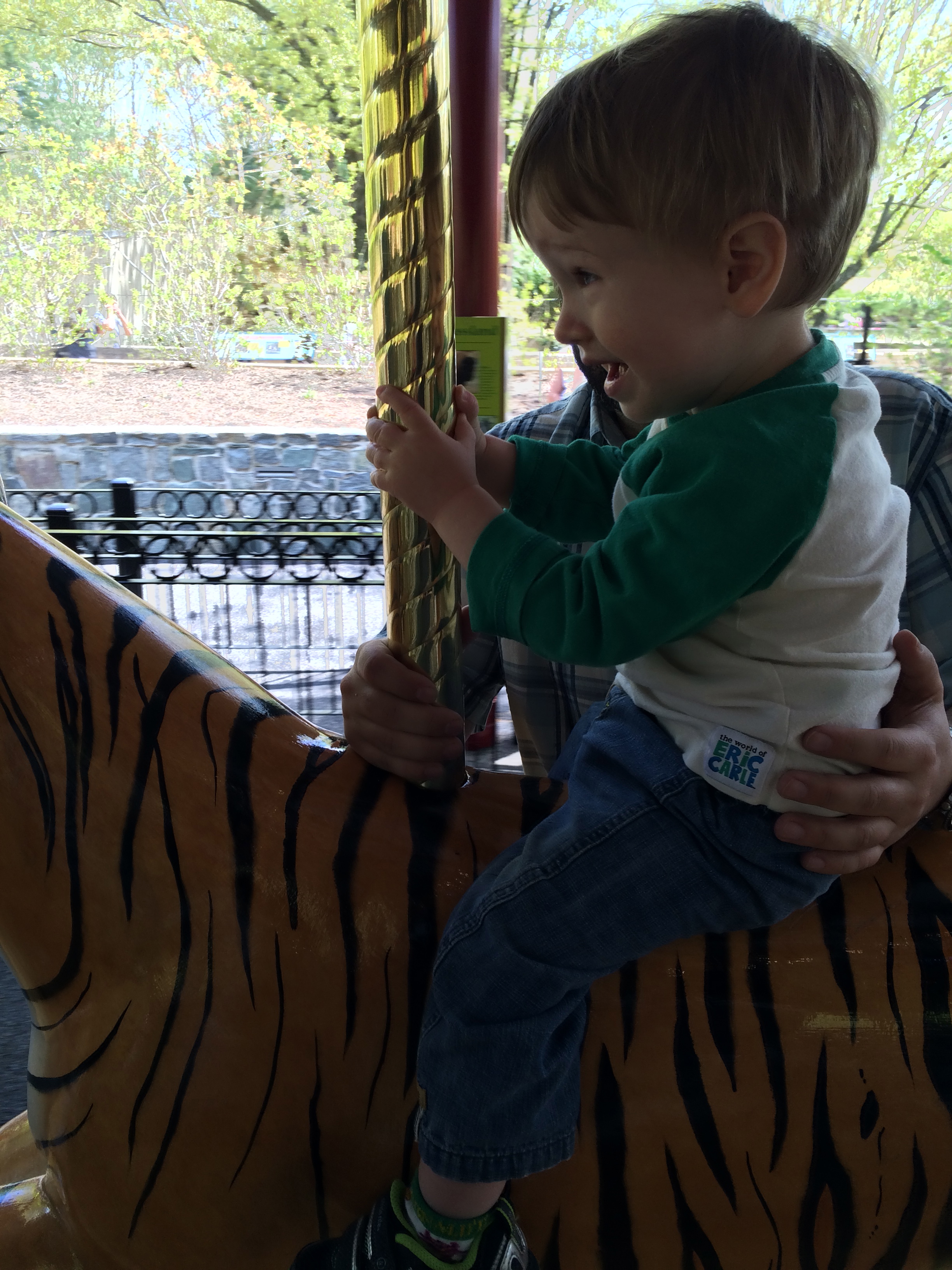 On Sunday, they made breakfast and then we drove a very pretty forested road to the National Zoo. We saw orangutans swinging over our heads, elephants, otters, seals, prairie dogs, and farm animals, and Ari braved the carousel: