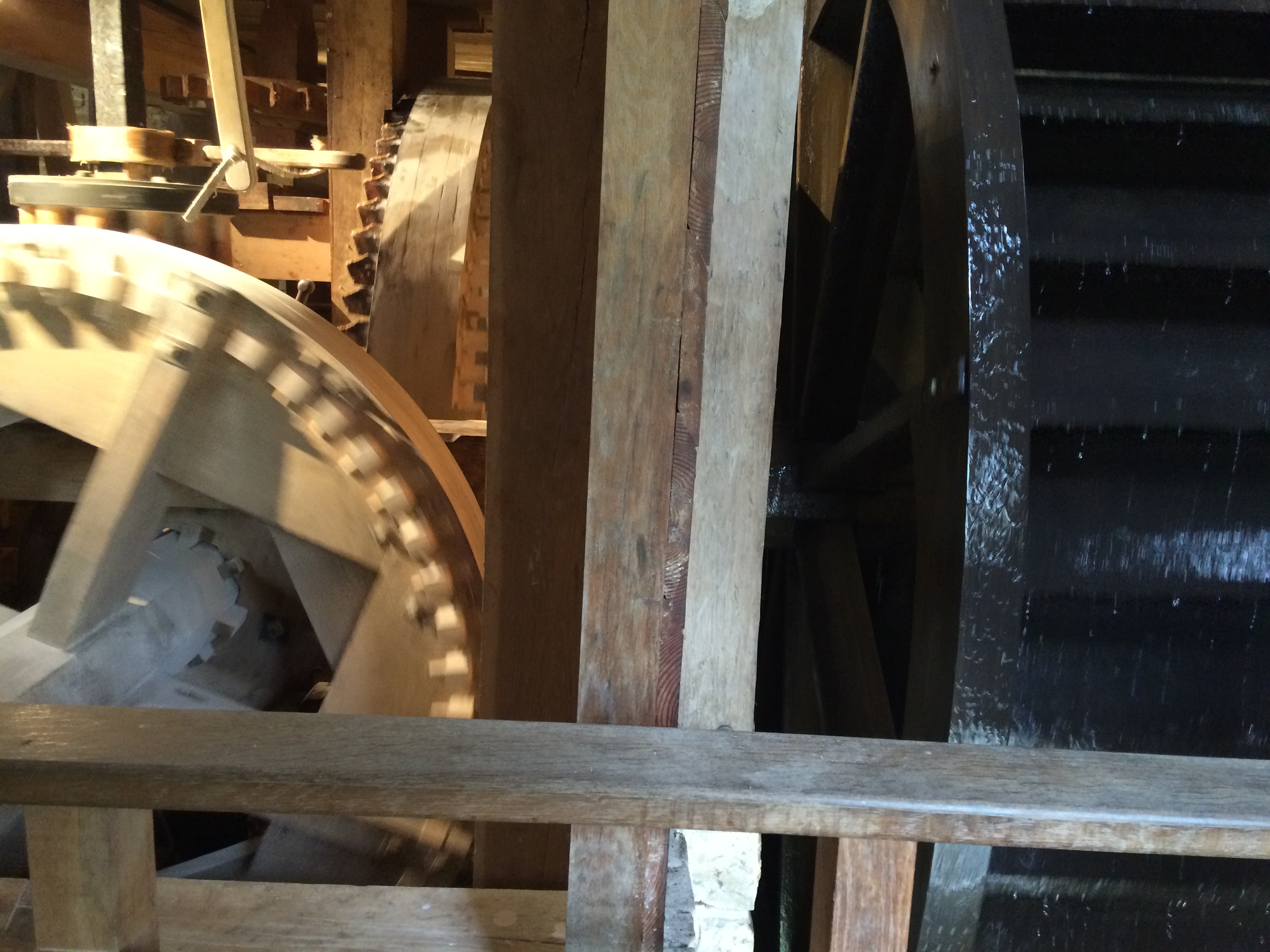 After a fun colonial-ish lunch at the Mt. Vernon Inn Restaurant (I loved their broad-planked, rustic wood floors, which you can kind of see in this picture), we toured the gristmill and the distillery. Actually, I changed a gross diaper in a nice, modern bathroom during the distillery tour (sorry, I want to be realistic in case anyone reads this as a guide for a similar trip with a baby or toddler!). But at the mill, Ari was soaking up the attention of his great aunt, so I got to scope everything out.