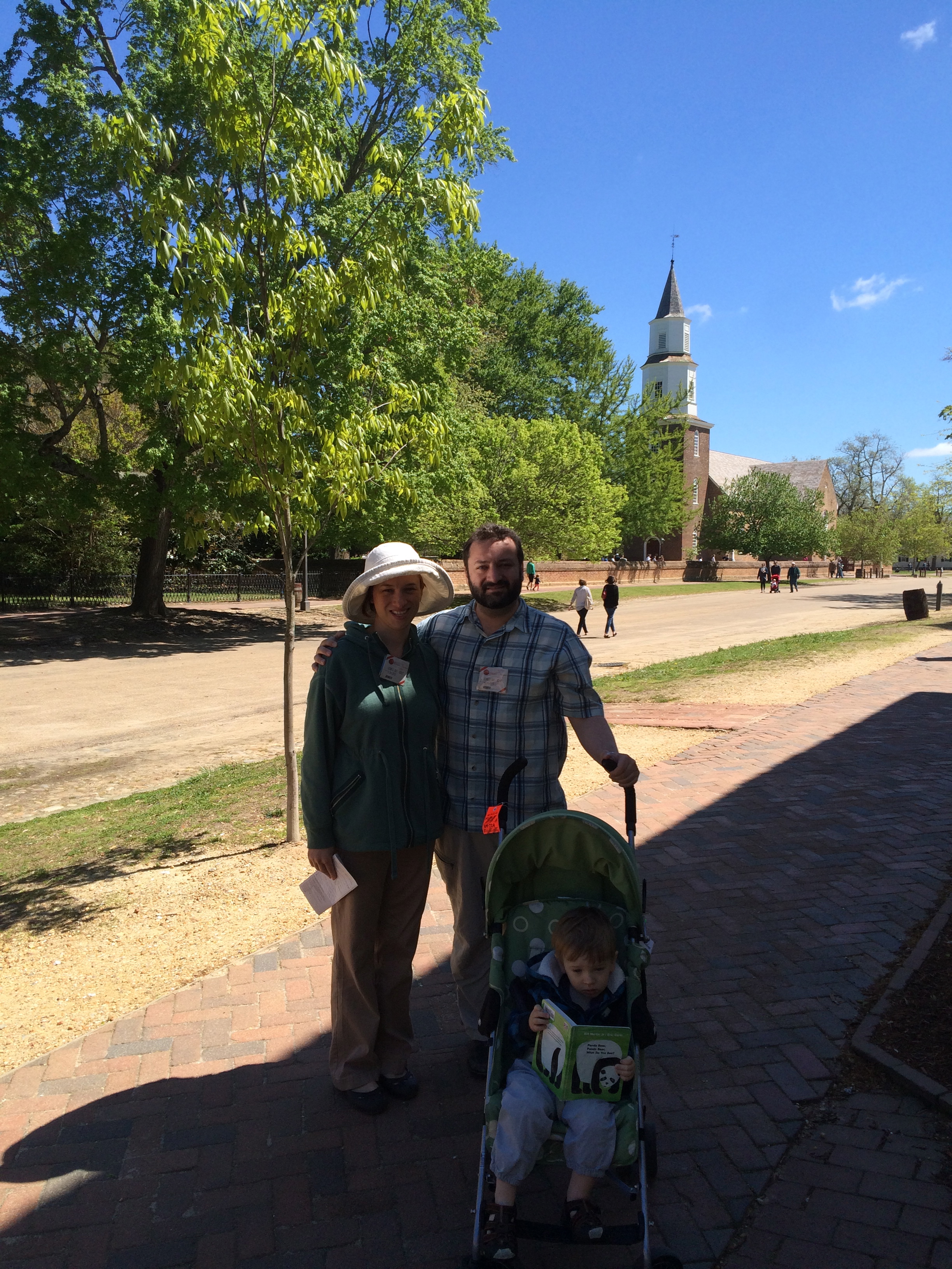 The experience the next day didn’t feel as much like stepping back in time, but it was like immersion history. “Living history,” they call it… Each house tour focused on the people who had actually lived there, but with each one also exemplifying a certain theme or lifestyle, so that by visiting all of them you could put together a multifaceted picture of the city and the time period. There weren’t as many people out and about in character, doing things like working in the gardens or shopping or taking care of animals, as I had imagined, and the houses and buildings I toured were not occupied by anyone other than the tour groups and tour guides, although the shops had tradespeople working and explaining what they were doing, and there was one house – the James Geddy House – we didn’t make it to that was supposed to be a family home showing a family going about their daily business, where you might be invited to help with the chores. 🙂 It’s too bad we ran out of time for that one. (Another location, the Powell House, wasn’t open when we were there.) We’ll just have to go back, when Ari’s older! I suppose it makes sense that they can’t have people stomping around and playacting too much in the buildings that are original, unlike a completely reconstructed village. And they had a lot of Revolutionary War speeches and marching in the streets, and courtroom scenes, and other activities we didn’t make it to. The place is huge! But for a trip with a toddler, we saw as much as we could! Or at least I did… A. kept having to stay outside with Ari and he spent a few hours walking him up and down the streets while he napped in his stroller, which we couldn’t take into any of the tour areas. He was very gracious about letting me have my special day. 🙂