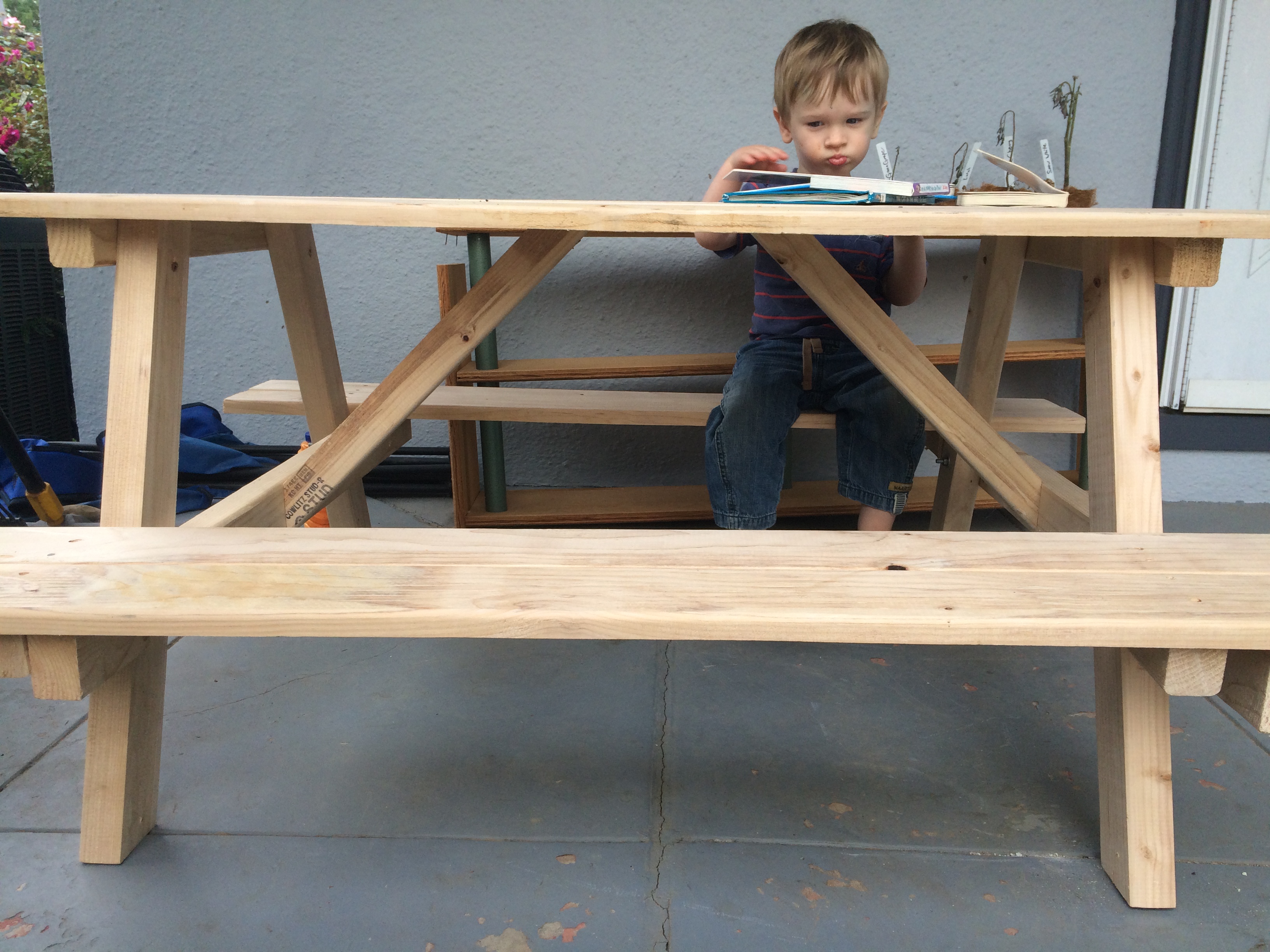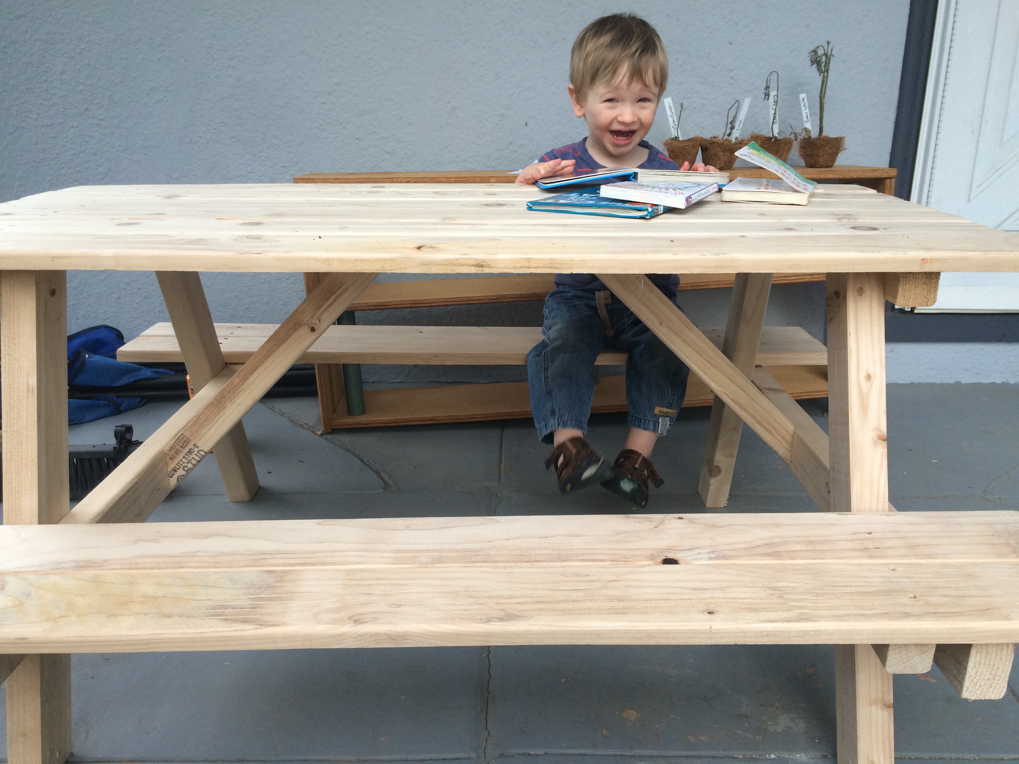 Ari’s grandpa – A’s dad – visited and he and A. constructed this darling little table from a Home Depot kit. I’m hoping to use it for Ari’s birthday party.