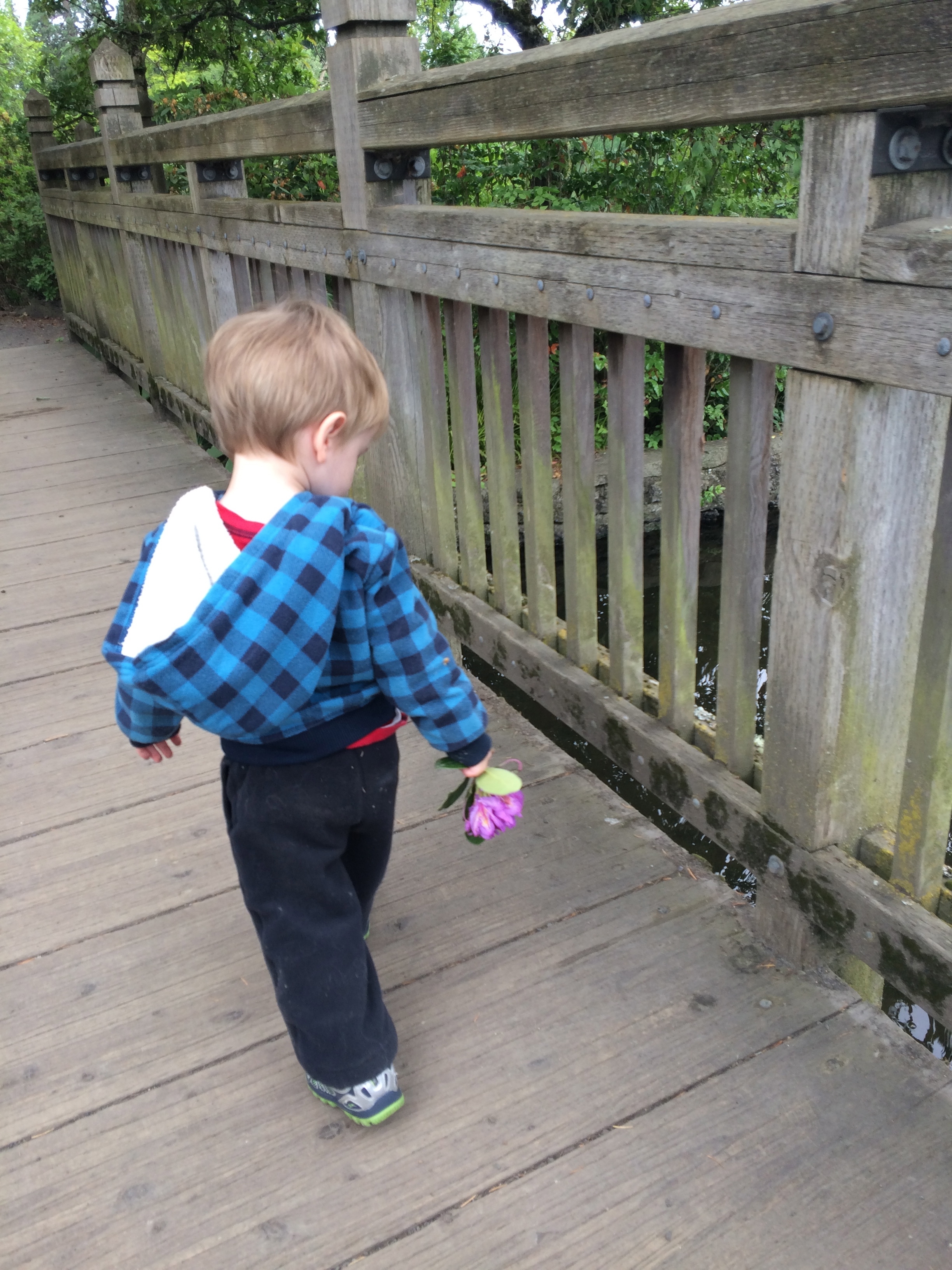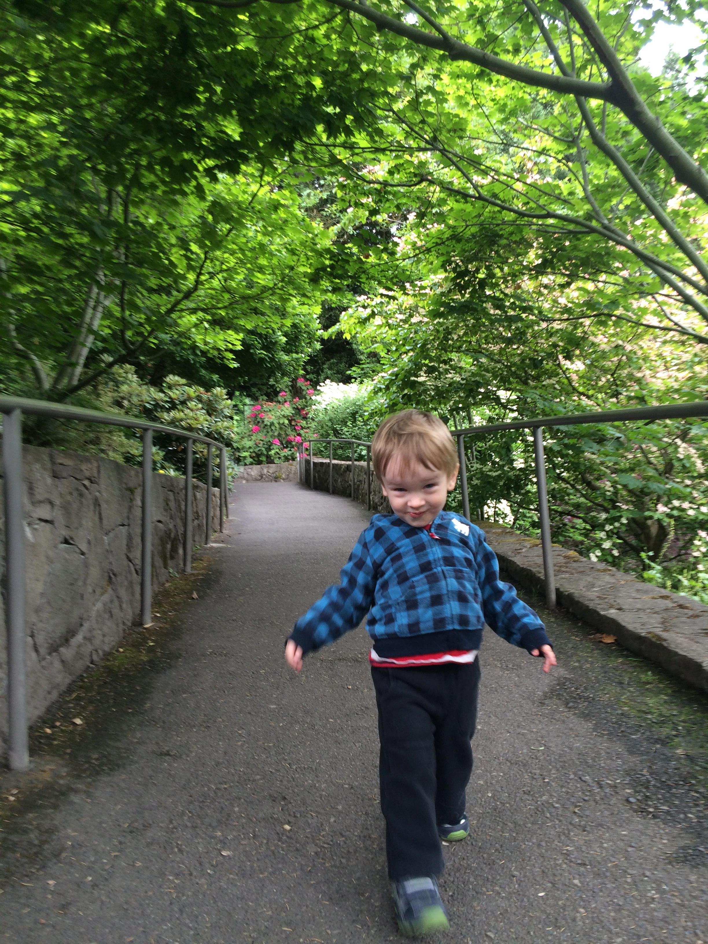 Over Memorial Day weekend, we had a good friend visiting and did lots of sightseeing. One day, we biked downtown and went to the Saturday Market and the Chinese Gardens. Ari had just received this Elmer doll and book in the mail from his great aunt and uncle in Virginia (who we visited at the end of April), and he was so excited he wouldn’t let go of them all day, even during the whole bike ride.