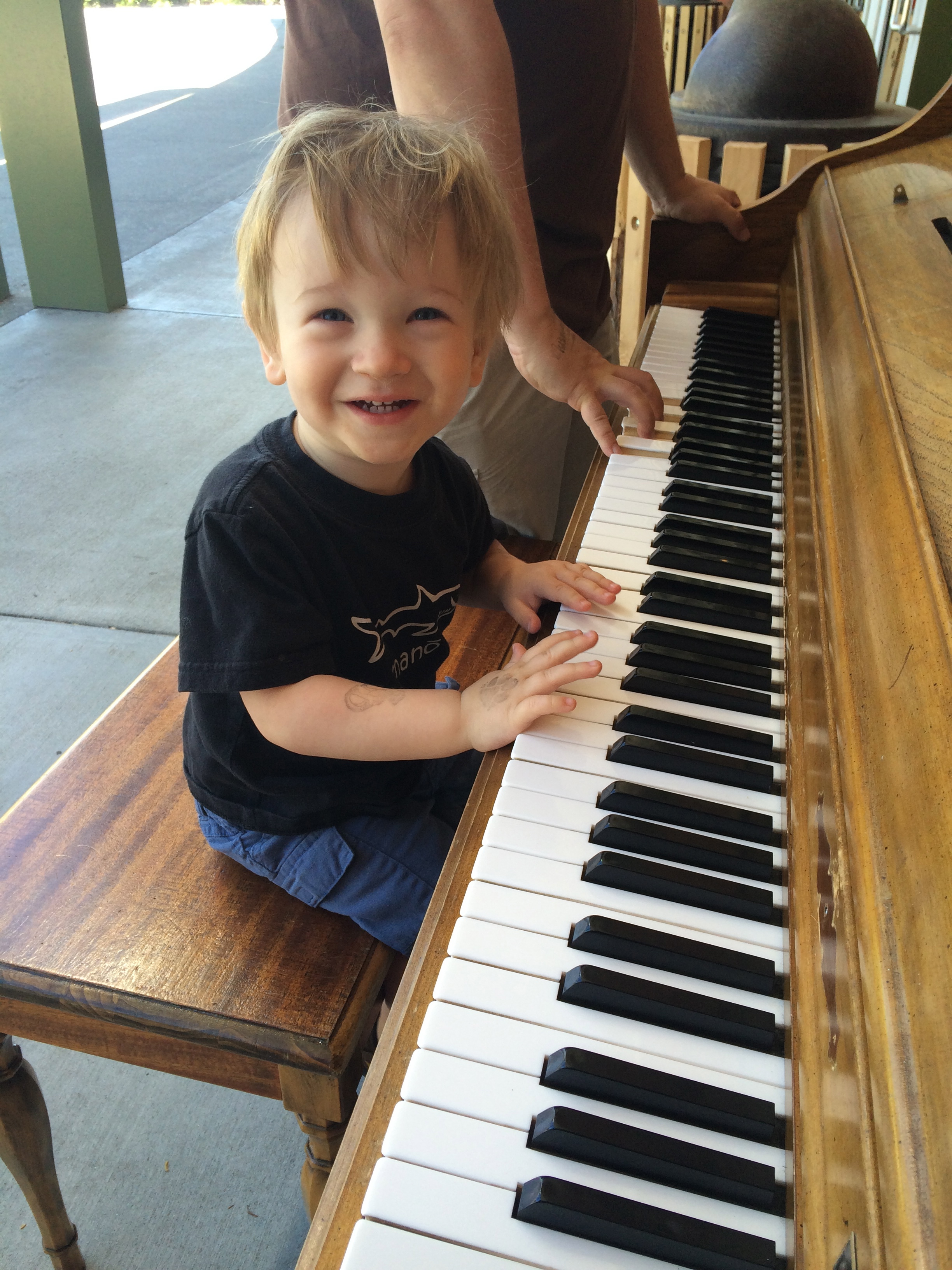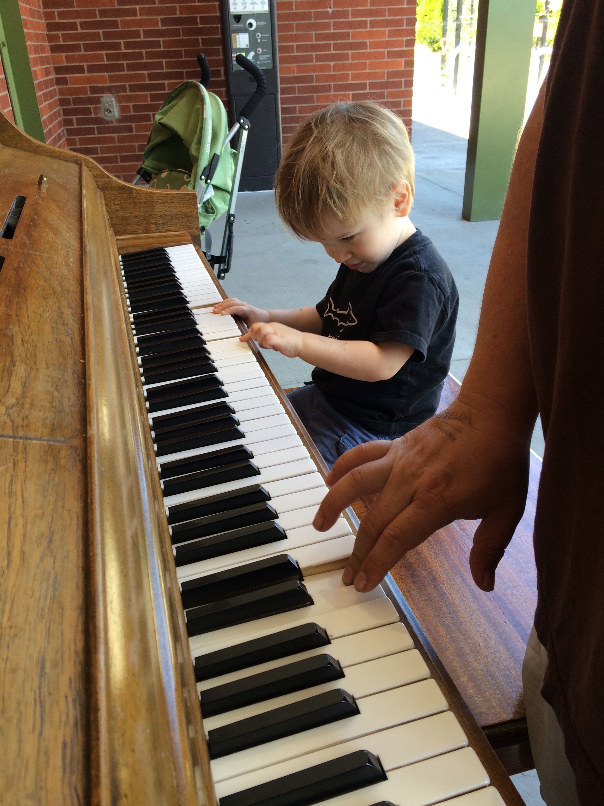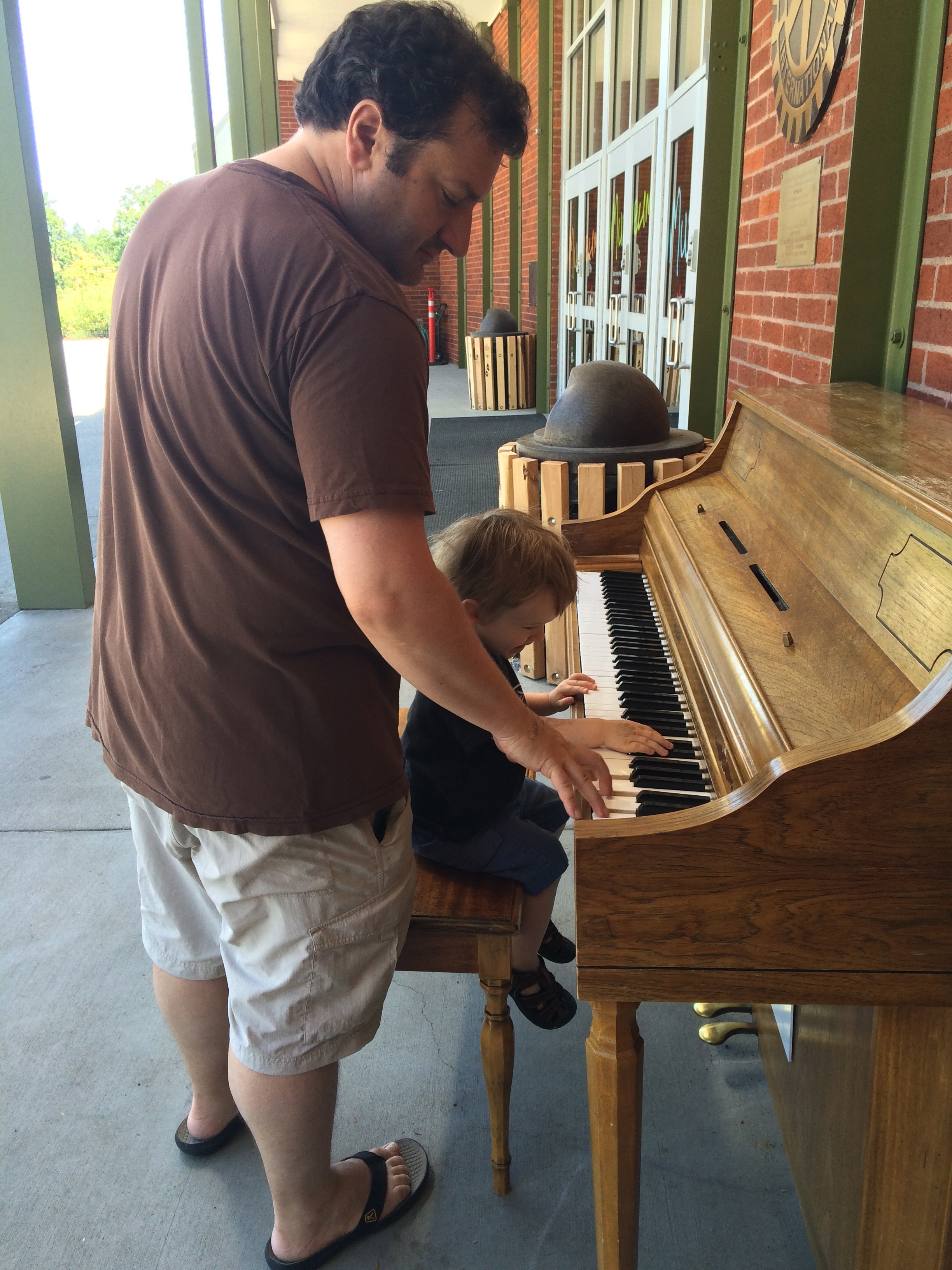 He wouldn’t touch the giant alligator (the one set up for brushing his teeth) at the Children’s Museum, but he played the piano outside: