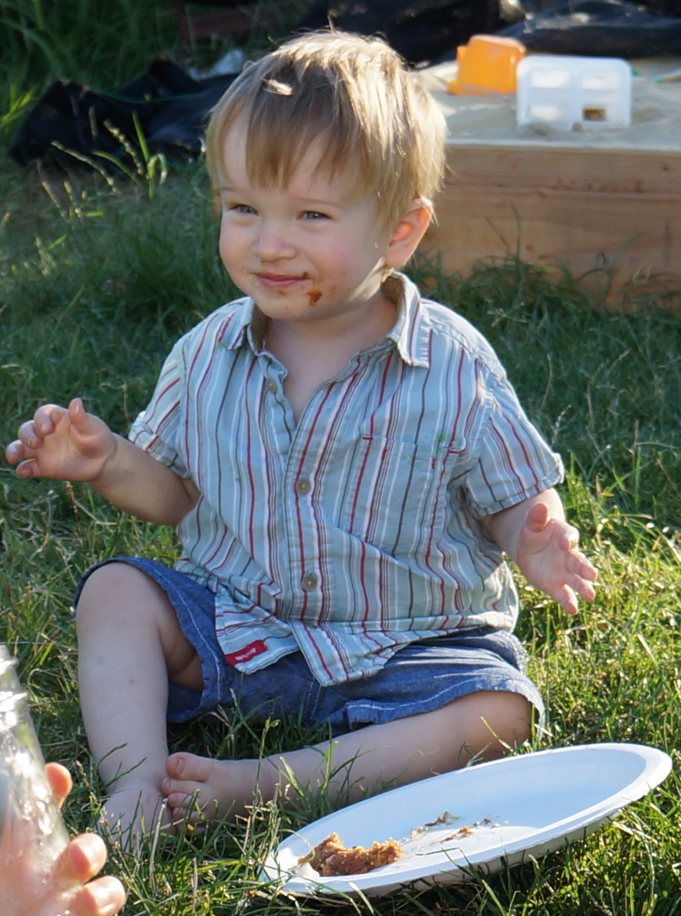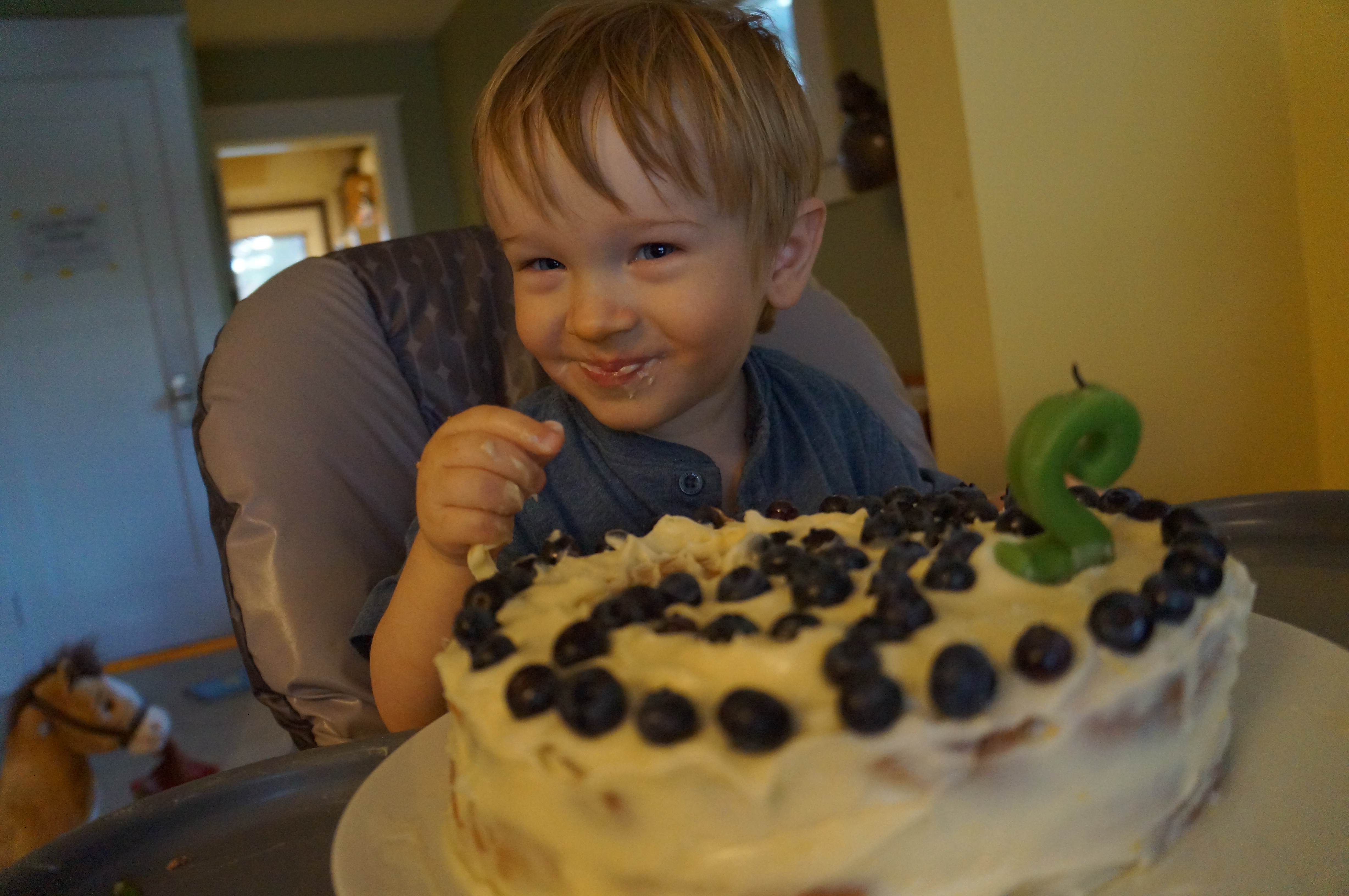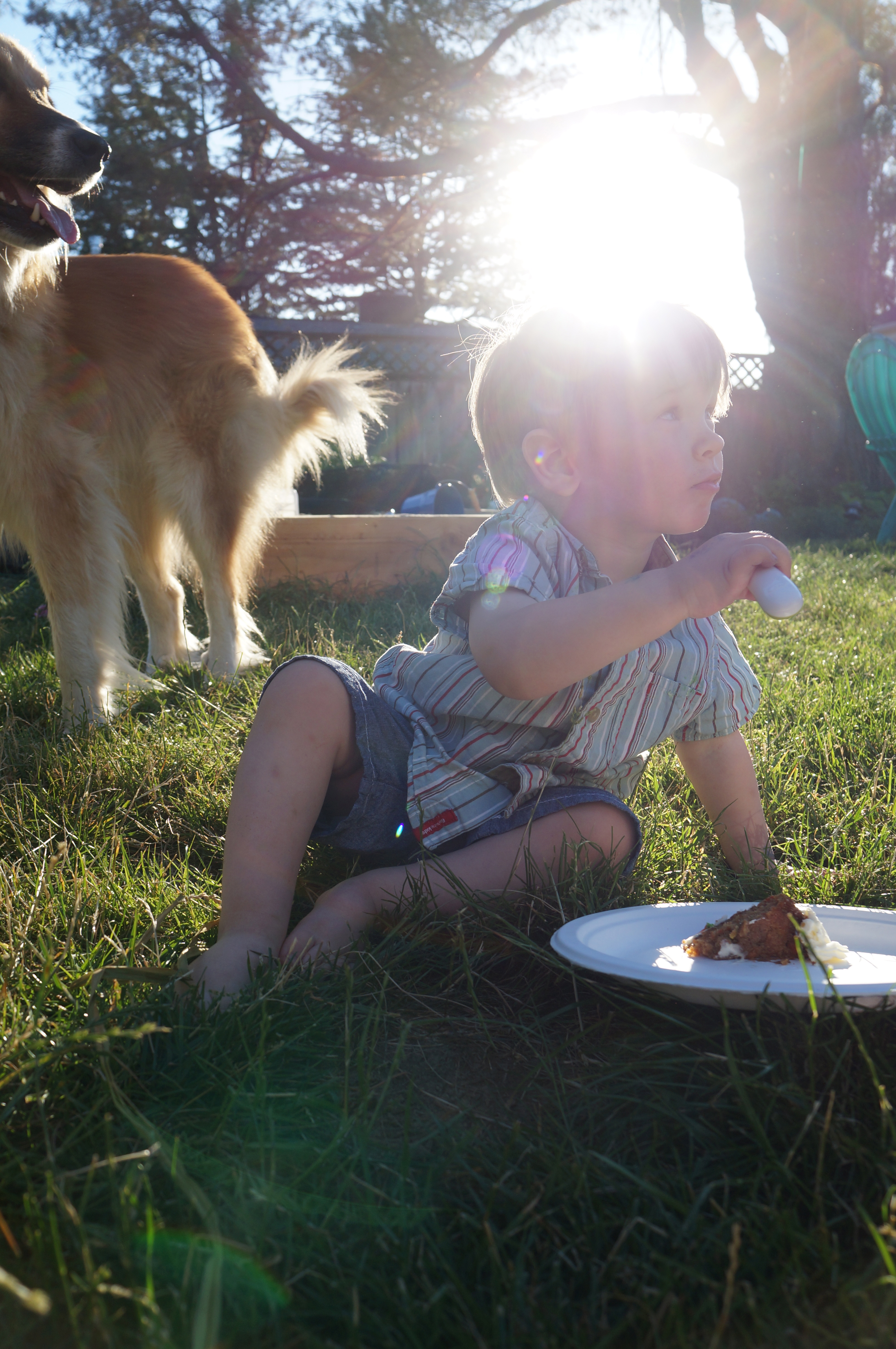 On the Sunday before his birthday, we had friends over in the backyard, and way too much dessert – gluten free vegan cupcakes, chocolate cake, and carrot cake.