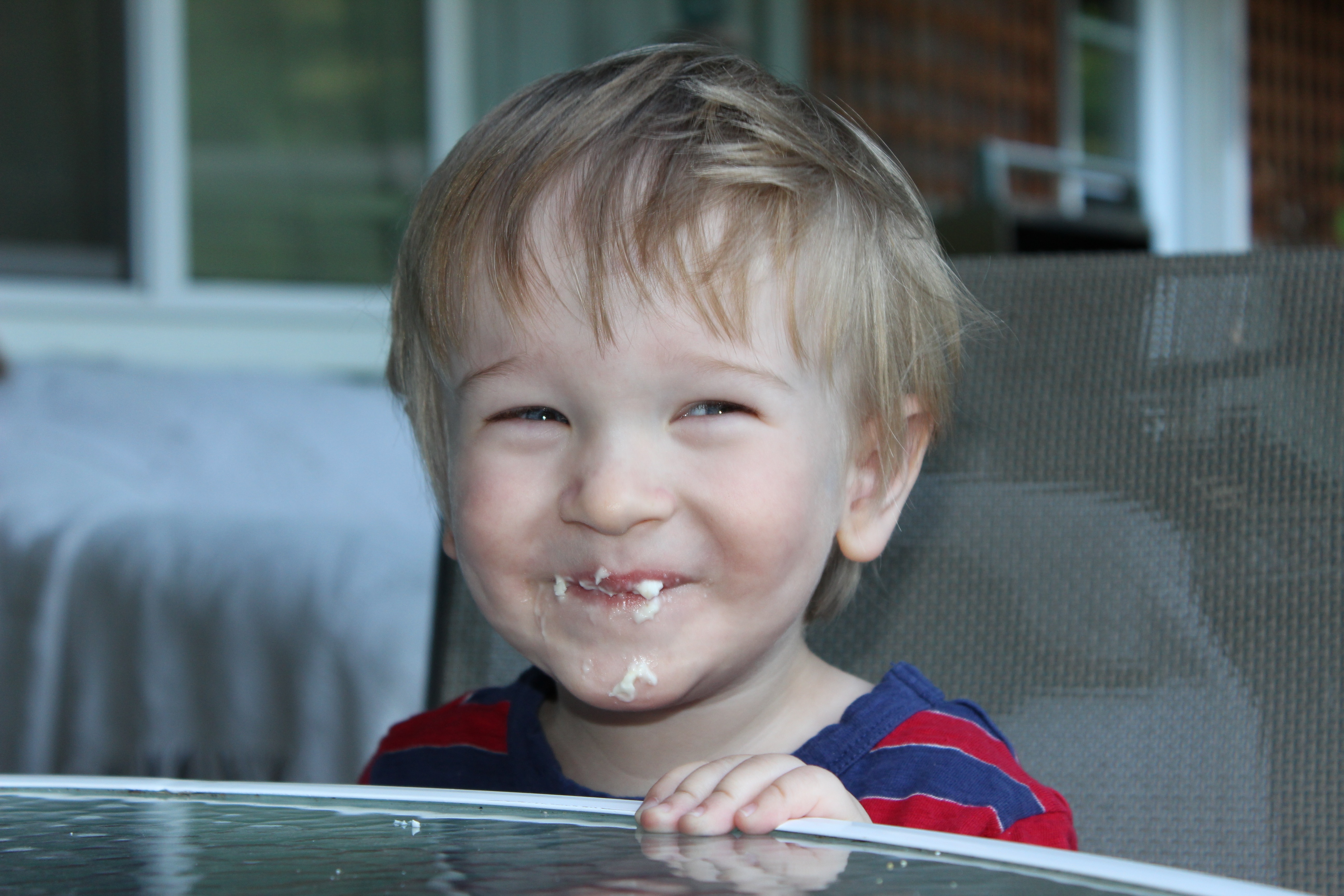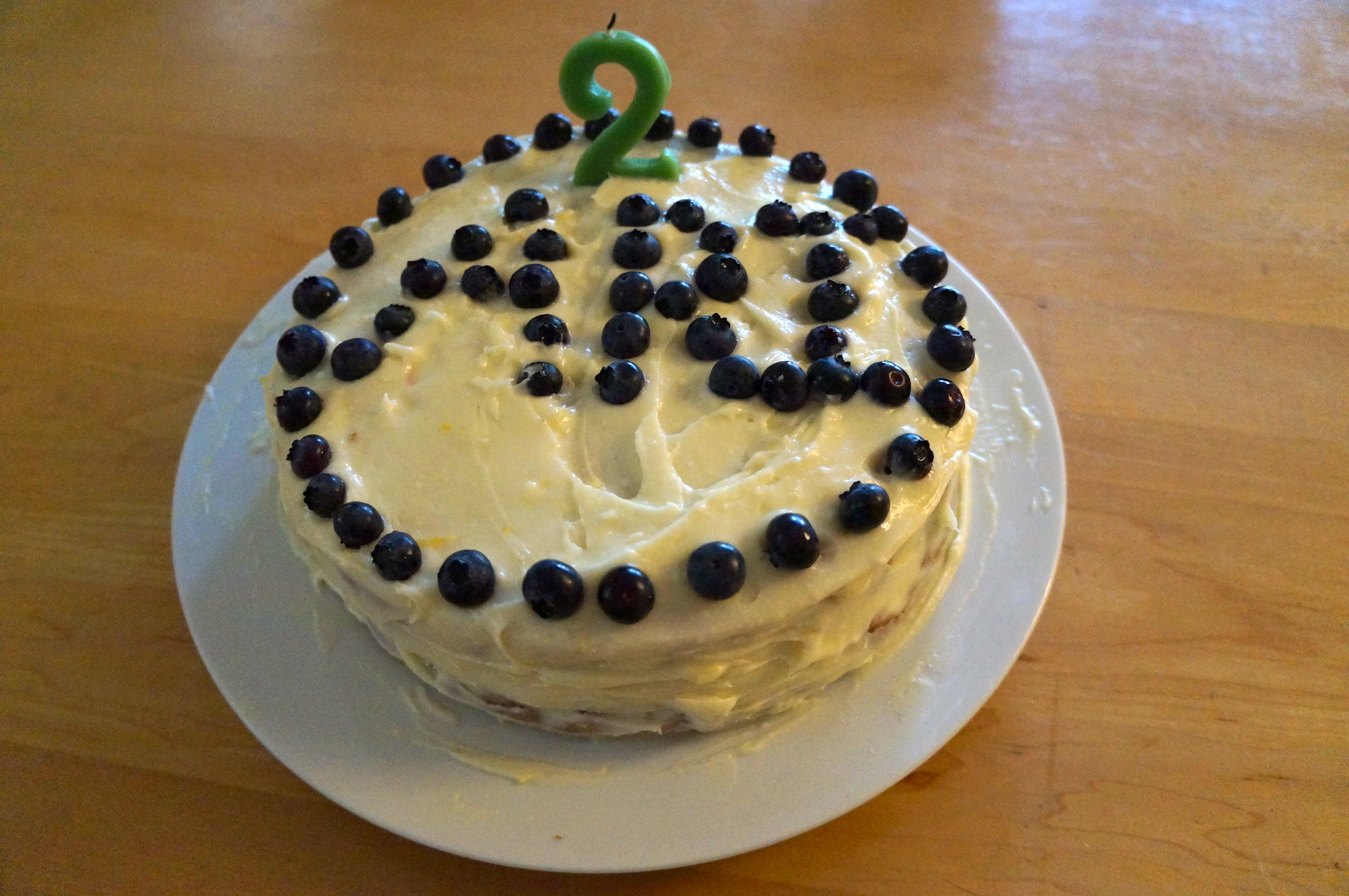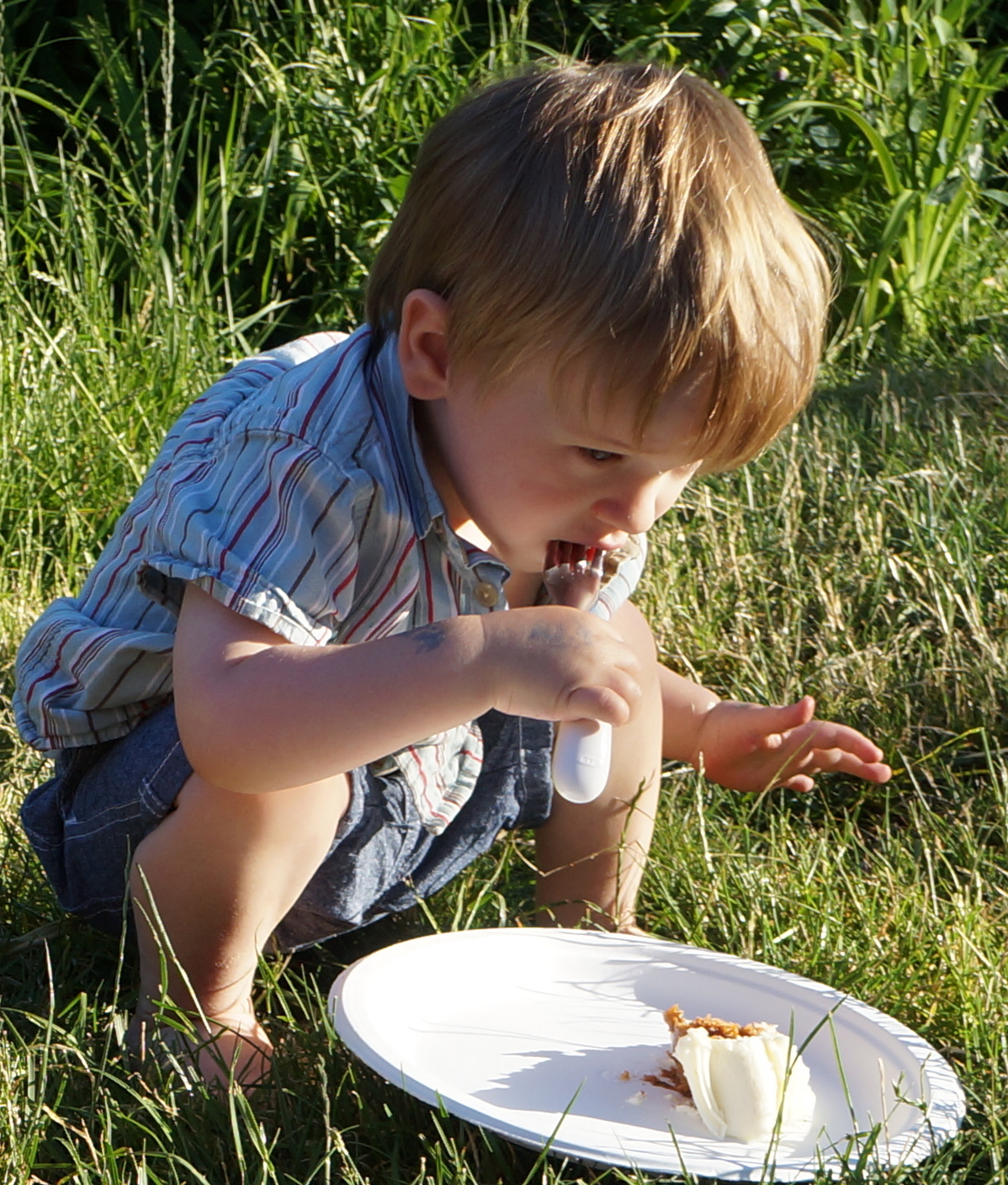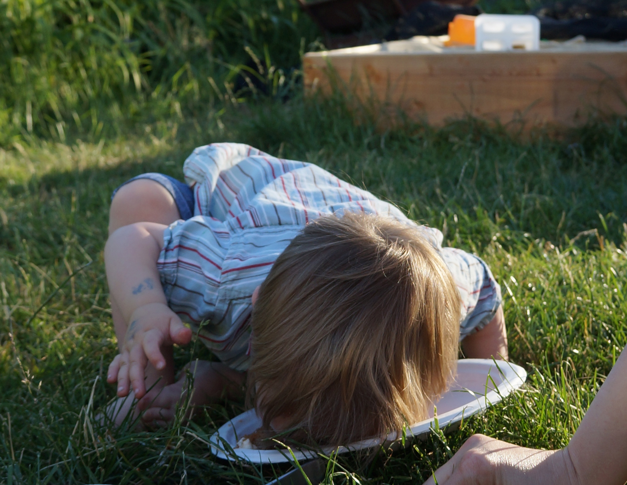On the Sunday before his birthday, we had friends over in the backyard, and way too much dessert – gluten free vegan cupcakes, chocolate cake, and carrot cake.