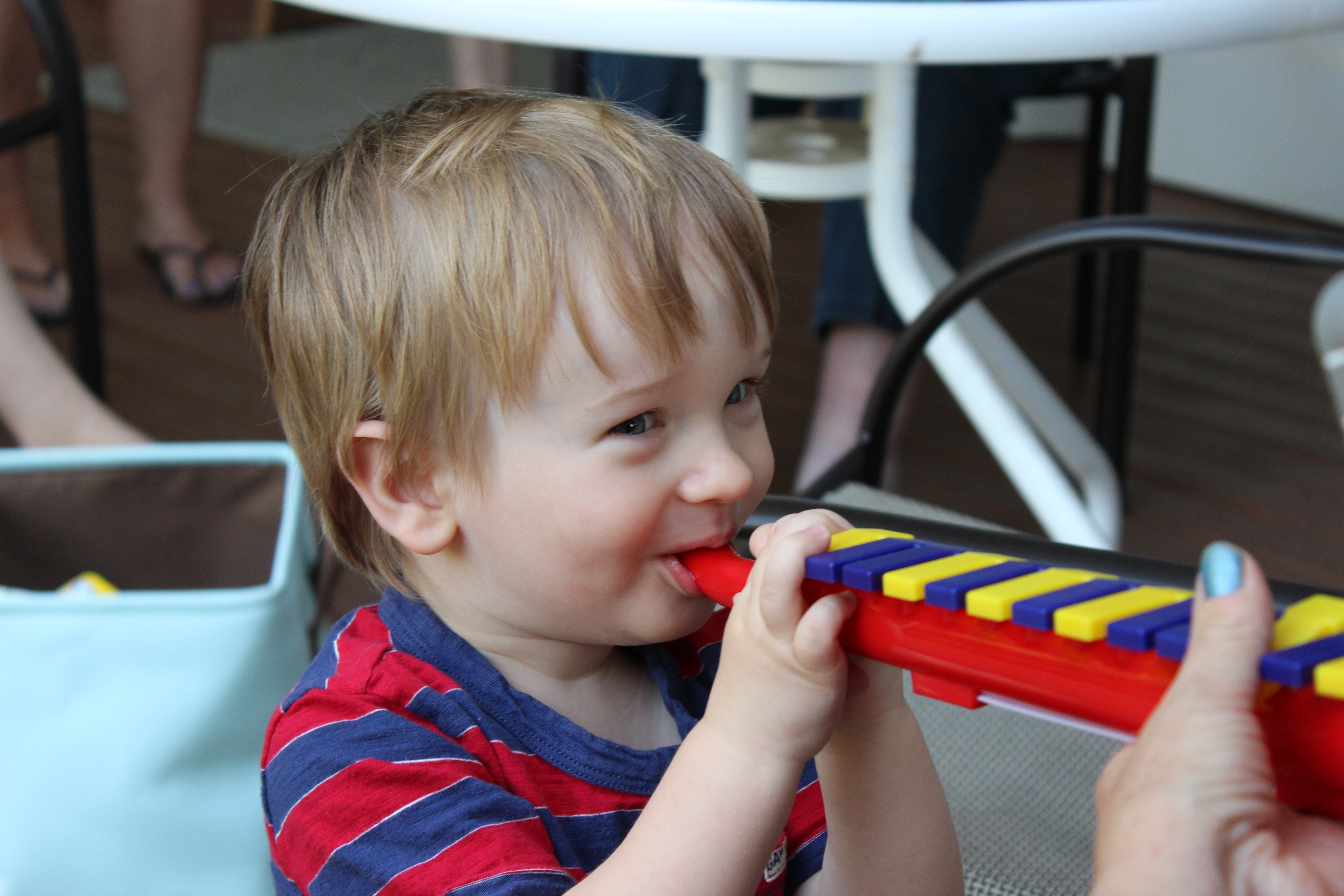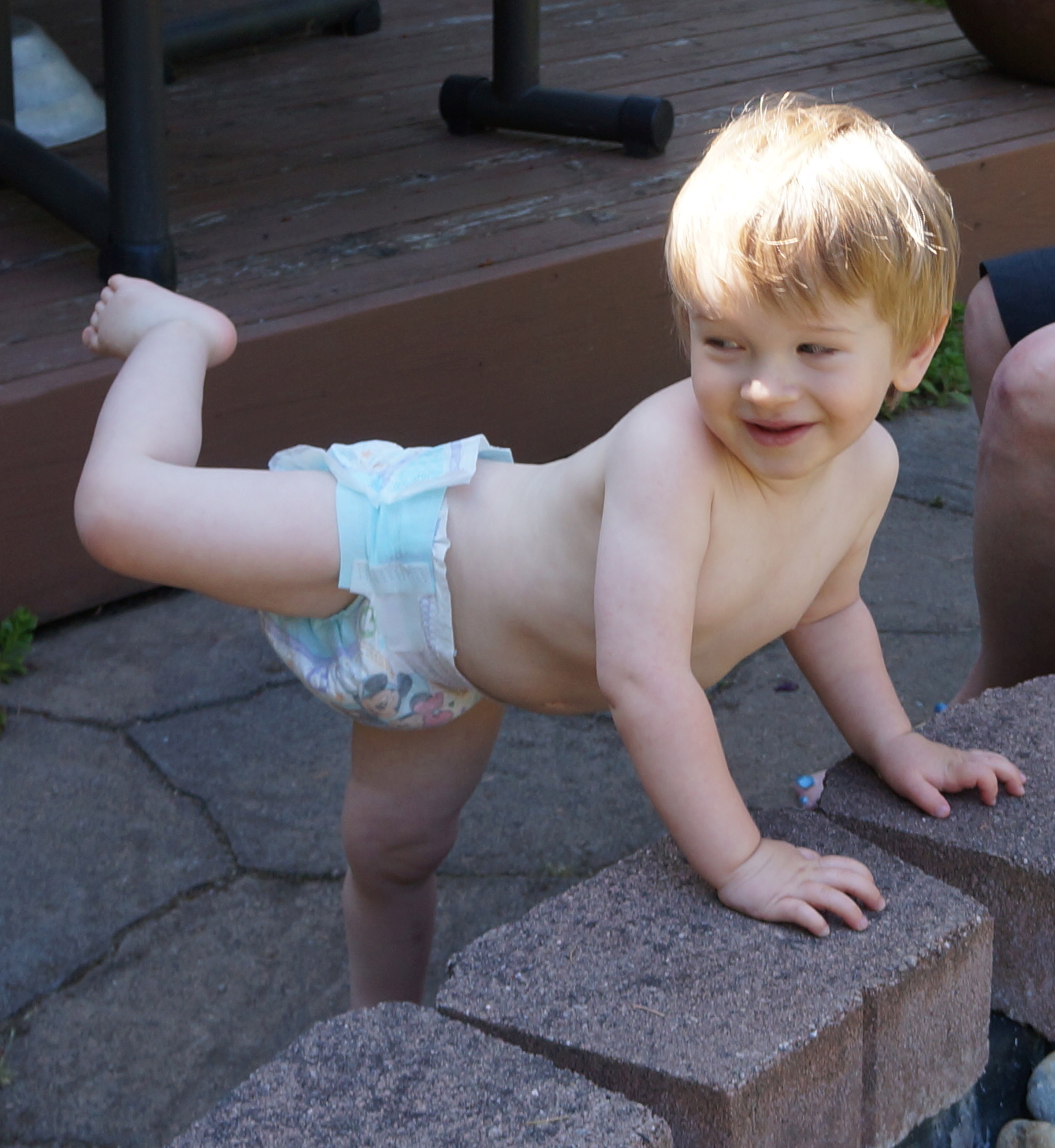 A couple of days ago, he noticed my scabbed knee and called it an “owie” and kissed it! He also, just in the last few days, has come out with more full sentences and using the word “I”. One day it was, “I want the numbers book” and the next day it was, “I want to go in the backyard!”