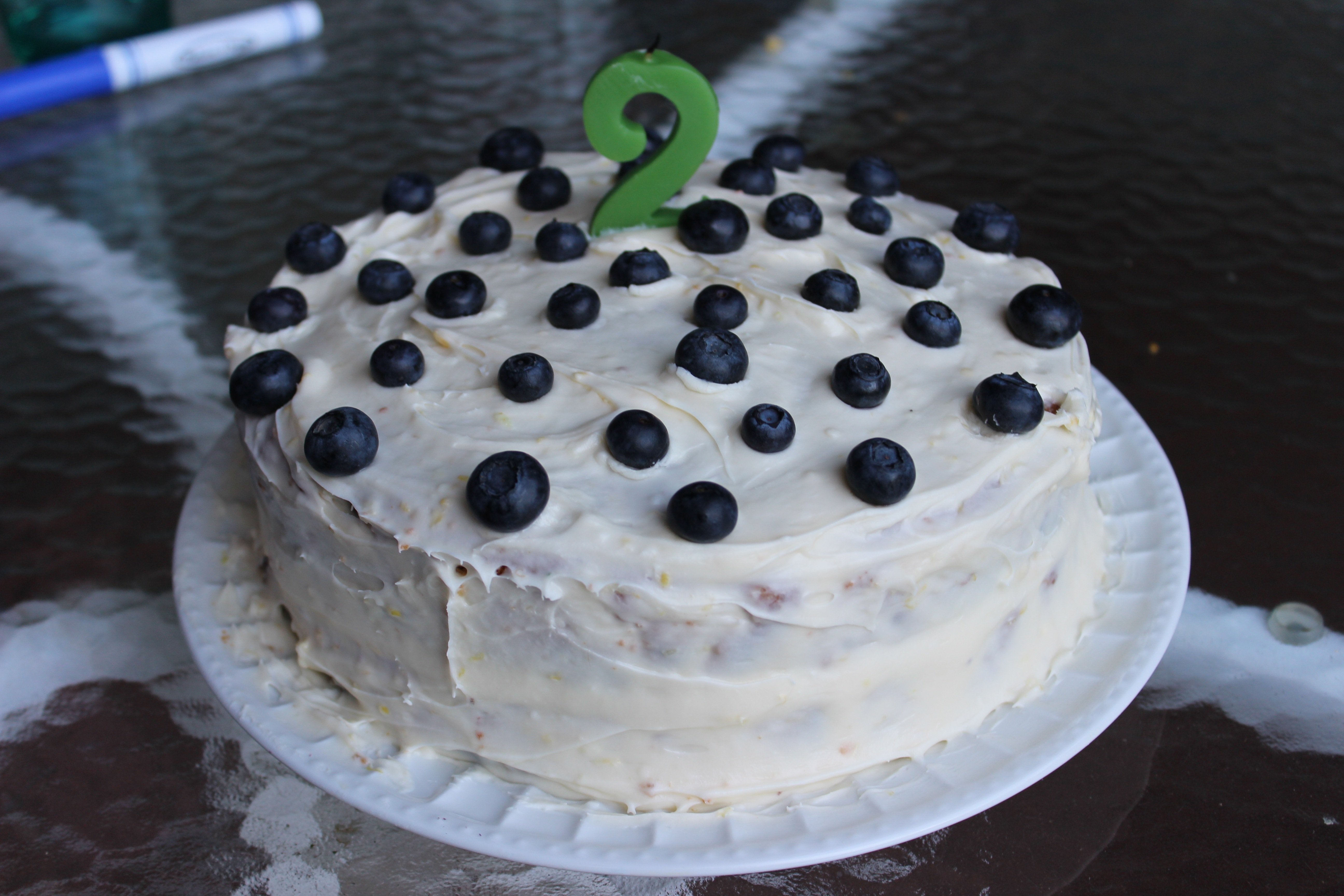 During the day, I spent way too much time making this banana blueberry cake (recipe here). It was delicious, though! It was more like banana bread than I was hoping for, but a super moist, dense banana bread with blueberries inside and a cream cheese frosting. The blueberries on top came from our yard! After we moved it away from Ari and put it on the table and gave him a little piece, he got upset and gestured at it, saying, “Big bowl! On the table!” and patted his high chair tray.