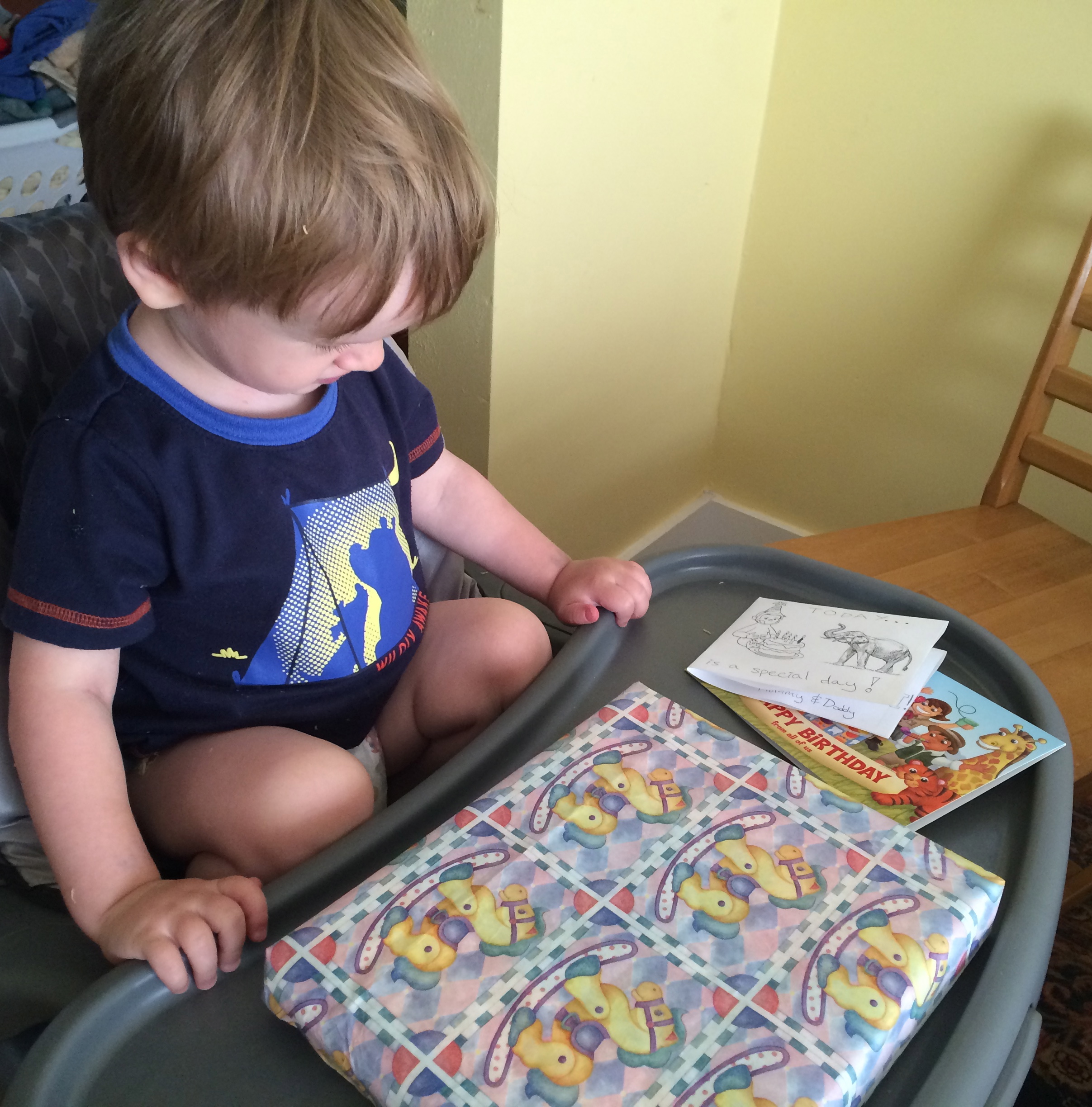 On the Saturday after his birthday, we got together at my aunt and uncle’s house with my extended family and some of A.’s family. Ari got lots of presents! And I made the same cake.