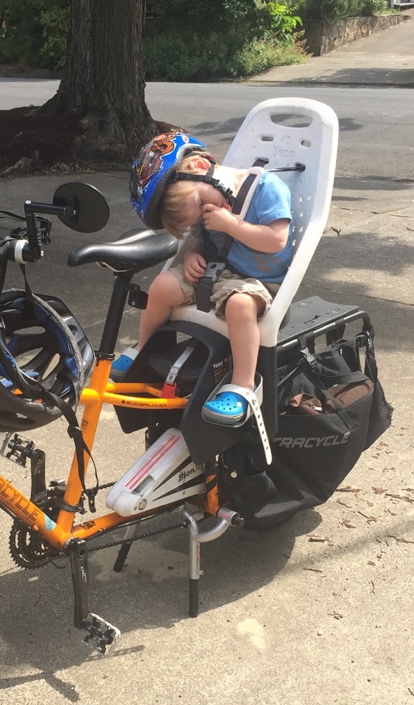 A couple of other pictures from June – Ari fell asleep on the bike ride home from the zoo: